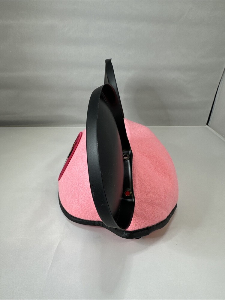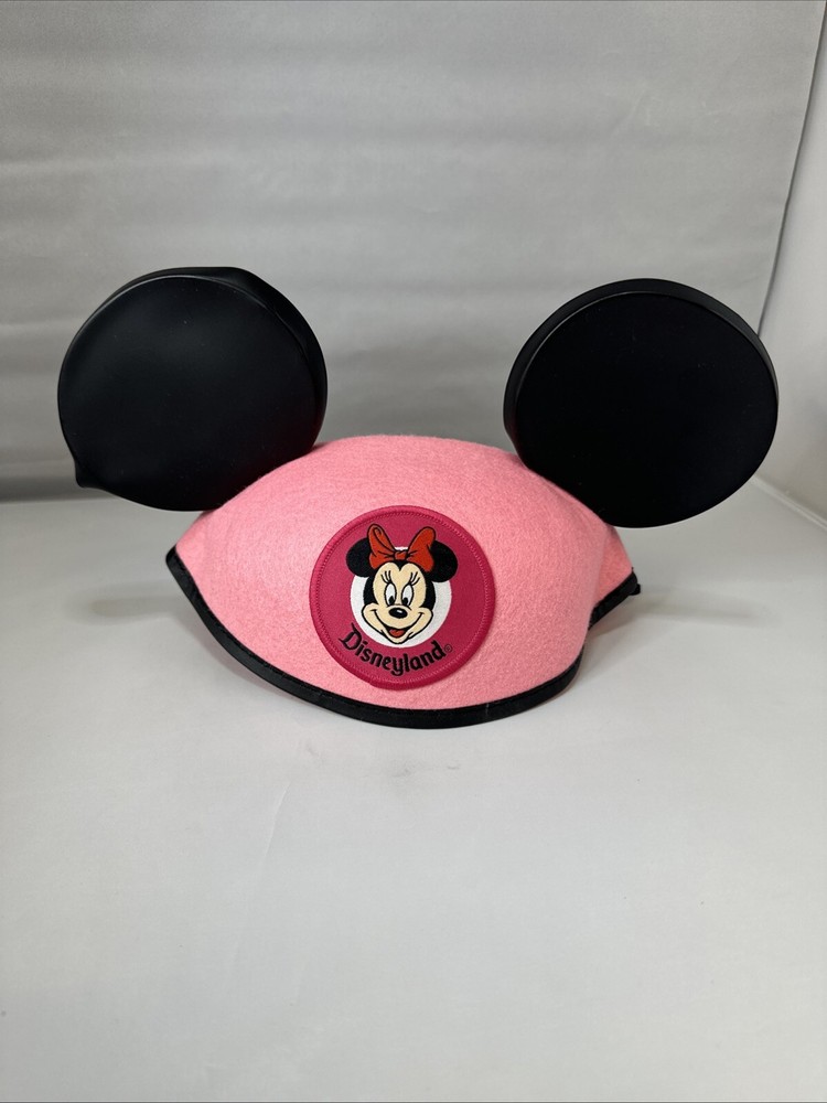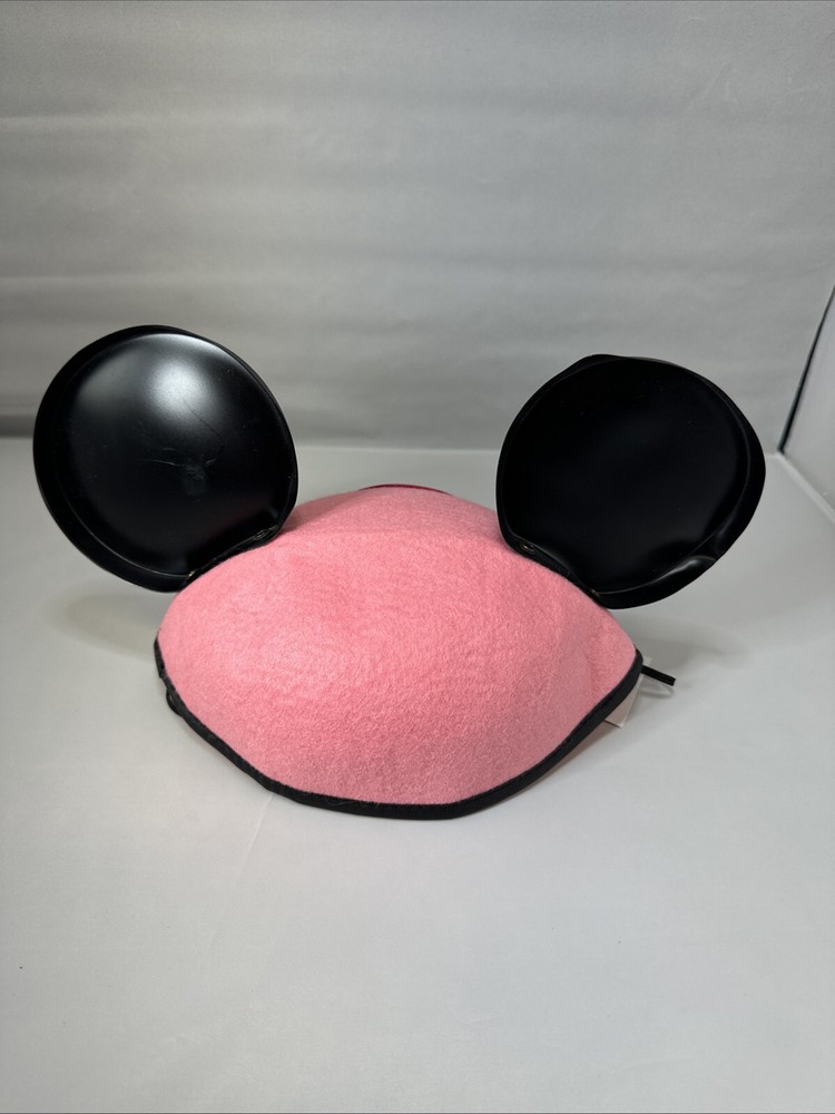 This classic hat featuring Minnie Mouse is perfect for any young Disney fan! The hat is made in Thailand and showcases Minnie Mouse's iconic pink color scheme. The plastic ears on the hat make it a playful and fun accessory for any toddler or youth. This collectible hat is a great addition to any Disneyana collection and is sure to be a hit with any unisex fan. The right ear has a slight bend in it. See pictures.