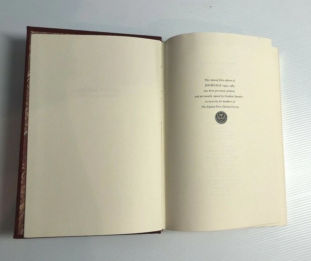 Journals - 1939-1983 by Stephen Spender THE FRANKLIN LIBRARY 1st Edition Signed by the Author This leather-bound gilt-edged book is a First Edition , signed by the author. This book is in pristine VERY GOOD condition -- with a few handling signs. Please examine all photos as they are part of the item description. Please note my 30 day return policy, see my 100% satisfaction rating, read my buyer feedback and bid with confidence. Communication If you have a problem or question regarding your transaction please contact us before leaving any type of feedback. We will work with you to resolve any problem you may have. PLEASE BE CAREFUL NOT TO ACCIDENTALLY OPEN A CASE. CODE S2-BS-3 (book #1) and CODE S2-BS-4 (book #2)