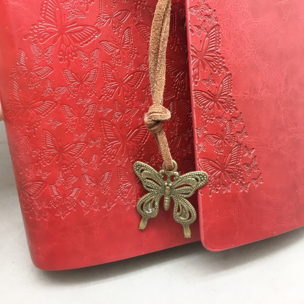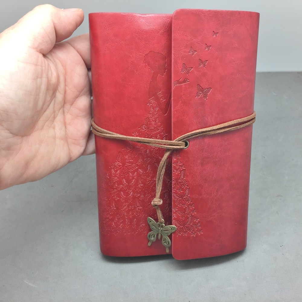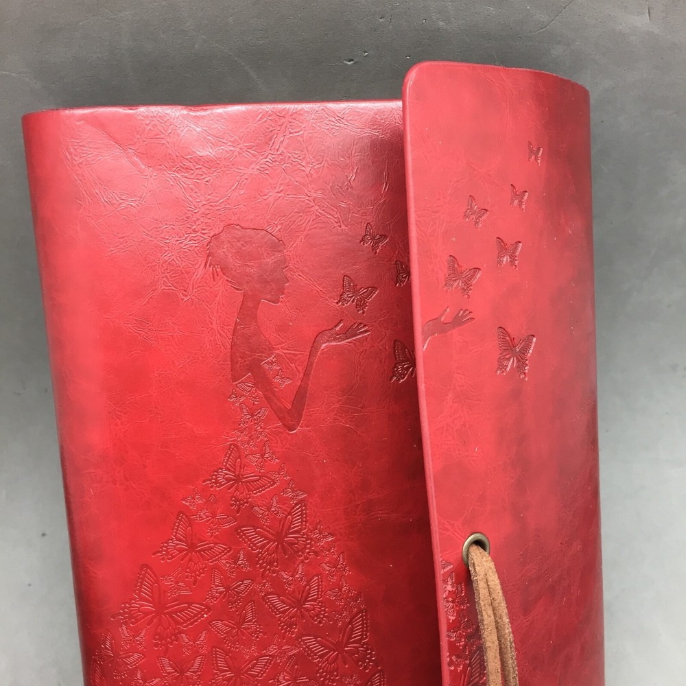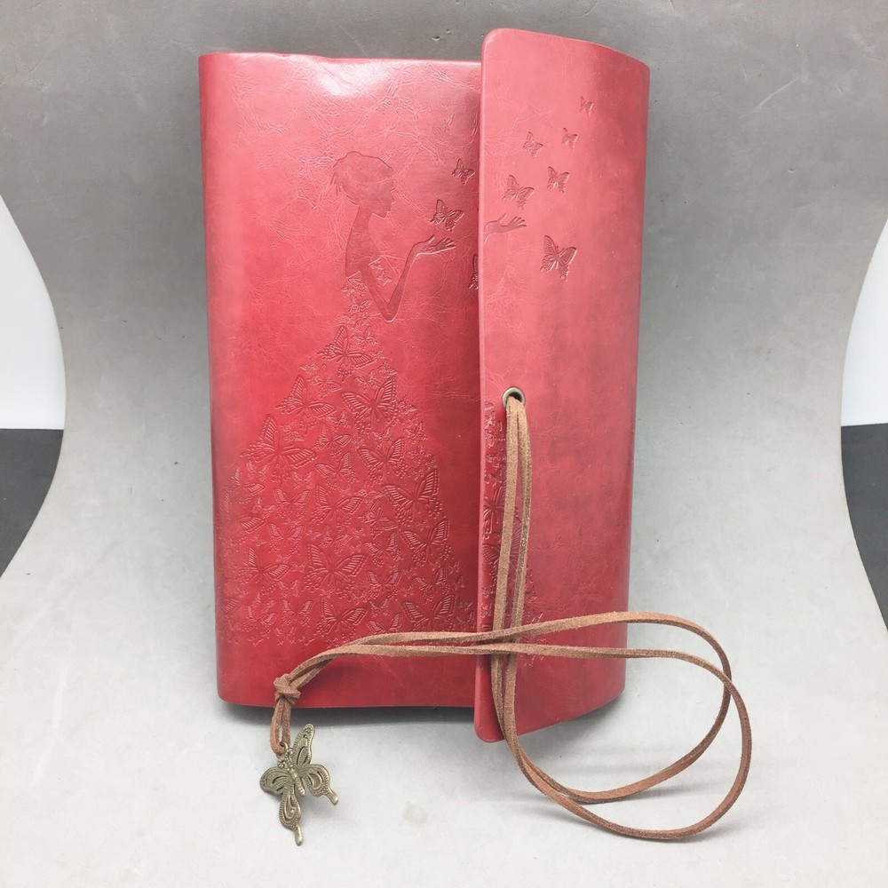 Modana Butterfly Embossed Red Leather Journal Notebook Spiral Refillable 7 1/4" This is a Modana red leather journal notebook that measures 7 1/4" x 4 3/4" x1". The journal features an embossed cover with a picture of woman releasing butterflies. The wrap cord around the book has a bronze tone metal butterfly dangle. The notebook is refillable with a spiral clip. The pages are brown tone. My photos are of the actual item you are getting. See our store for other interesting items. PAYMENT DETAILS: Buyer must furnish seller with "ship to " address that matches the address registered on ebay. Payment is expected within 3 days after close of auction. SHIPPING DETAILS: If package is less than 13oz it will be sent First Class. If package is over 13oz to 5 lbs it will be sent Priority Mail. If package is over 5 lbs it will be sent Priority Mail or Retail Ground. Book packages less than 5oz will be sent First Class. Book packages over 5oz will be sent Media Mail. We usually ship within 24 hours of payment (weekend & holidays excluded). Please contact us if you prefer another method of shipping. We are happy to combine multiple items to save shipping costs (if items can be put together). RETURNS: Buy with confidence. We provide a money back guarantee if you are not satisfied (minus shipping cost). Prompt return of item insures prompt refund. Items must be sent back within 5 days after return request. Returns must be shipped by an insured carrier. INTERNATIONAL BUYERS: You may qualify for a cheaper rate. We accept only PayPal. If you need more details contact us. Thank you for looking.