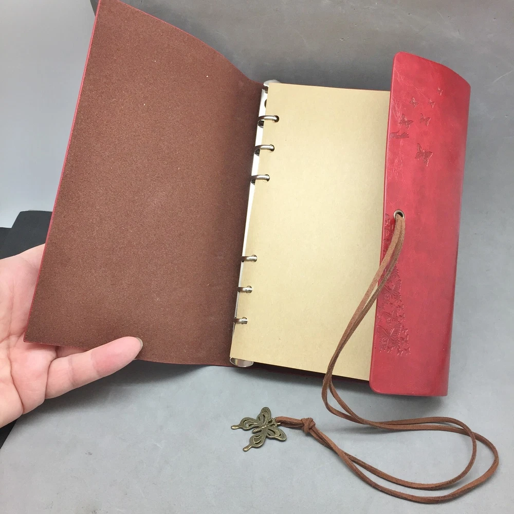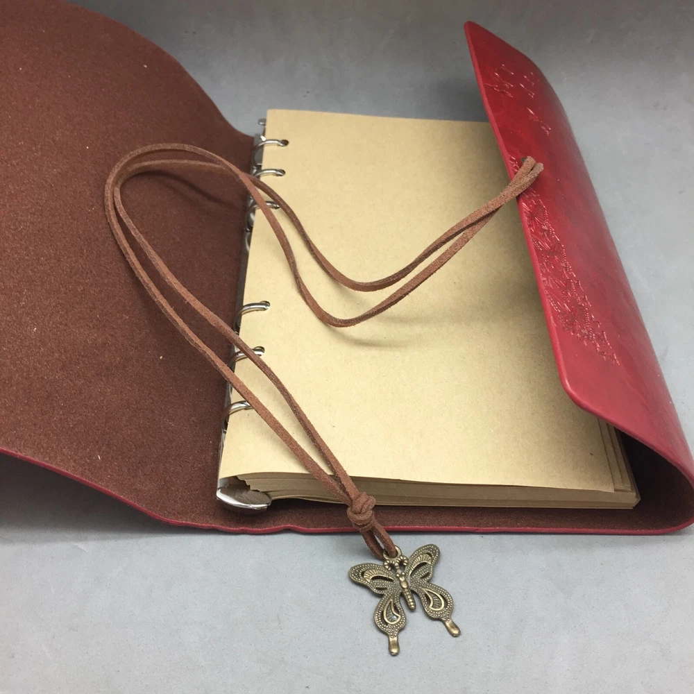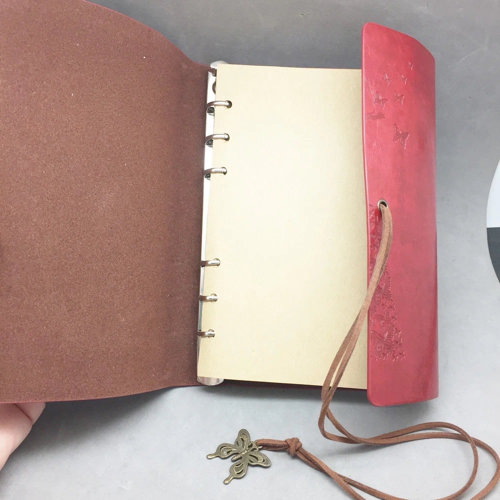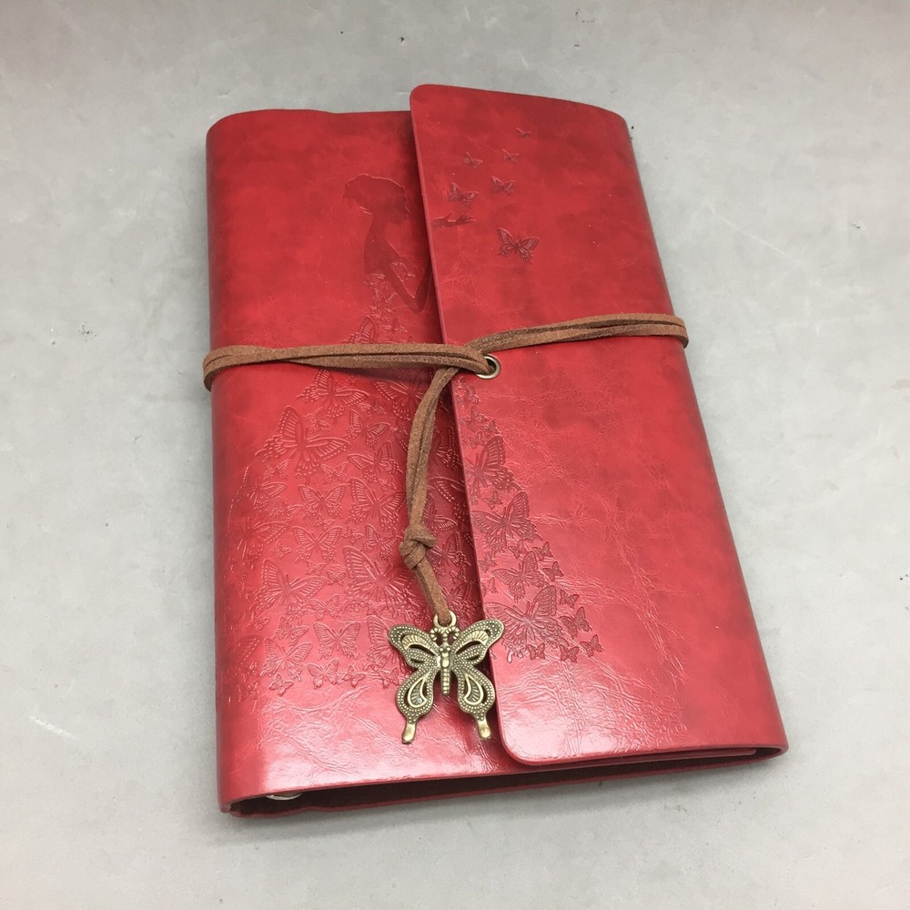 Modana Butterfly Embossed Red Leather Journal Notebook Spiral Refillable 7 1/4" This is a Modana red leather journal notebook that measures 7 1/4" x 4 3/4" x1". The journal features an embossed cover with a picture of woman releasing butterflies. The wrap cord around the book has a bronze tone metal butterfly dangle. The notebook is refillable with a spiral clip. The pages are brown tone. My photos are of the actual item you are getting. See our store for other interesting items. PAYMENT DETAILS: Buyer must furnish seller with "ship to " address that matches the address registered on ebay. Payment is expected within 3 days after close of auction. SHIPPING DETAILS: If package is less than 13oz it will be sent First Class. If package is over 13oz to 5 lbs it will be sent Priority Mail. If package is over 5 lbs it will be sent Priority Mail or Retail Ground. Book packages less than 5oz will be sent First Class. Book packages over 5oz will be sent Media Mail. We usually ship within 24 hours of payment (weekend & holidays excluded). Please contact us if you prefer another method of shipping. We are happy to combine multiple items to save shipping costs (if items can be put together). RETURNS: Buy with confidence. We provide a money back guarantee if you are not satisfied (minus shipping cost). Prompt return of item insures prompt refund. Items must be sent back within 5 days after return request. Returns must be shipped by an insured carrier. INTERNATIONAL BUYERS: You may qualify for a cheaper rate. We accept only PayPal. If you need more details contact us. Thank you for looking.