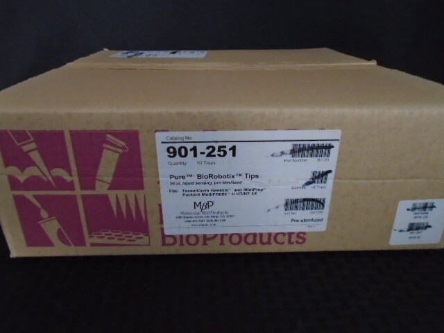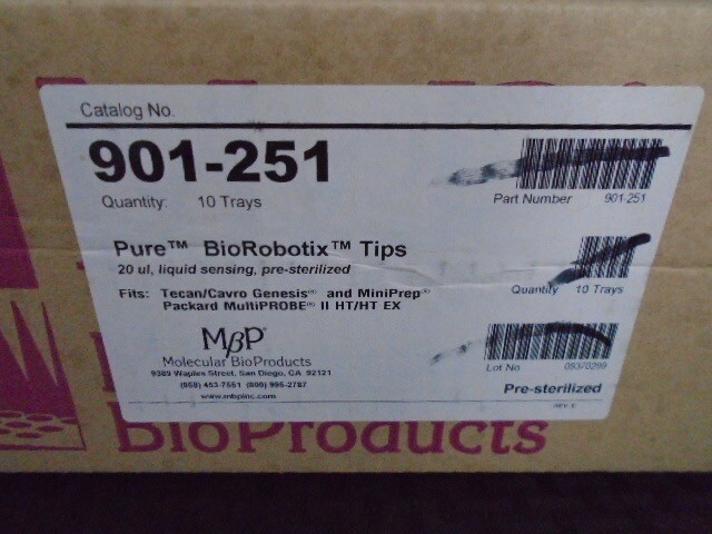 New, old stock. Multiple quantity - some open boxes and some sealed. All trays are sealed. 96 tips per tray x 10 trays = 960 tips per case. 20uL capacity. Liquid sensing black tips. Pre-steralized. Compatible with Tecan®, Cavro®, and Packard MultiPROBE II HT style workstations. $5 Maximum Shipping Rate on All Domestic Orders! Use eBay Shopping Cart to combine items from multiple listings. In the case of multiple quantity listings, the pictured item represents the worst condition of available items. Thanks for looking! Visit our store! Biotech Bargains Connecticut Categories Filtering Glassware Lab Bench Supplies Lab Equipment Other Packing and Shipping Pipetting Plasticware About Us Biotech Bargains specializes in the great prices on new and used laboratory glassware, consumables and equipment. Our inventory is sourced through liquidations and surplus from the biotechnology and pharmaceutical industries. We operate eBay stores out of Bristol, Connecticut (biotechct) and West Sacramento, Calilfornia (biotechca). Thanks for checking us out! _gsrx_vers_1266 (GS 8.3.3 (1266))