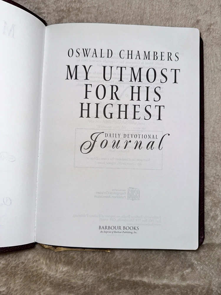Hello! Welcome to Doodlebug’s Deals! I do my best to accurately describe each item. There are times that I may miss something. I assure you that it is not intentional. If you have any questions, please message me. If you have problems after purchase, please contact me immediately before leaving neutral or negative feedback. Items come from a non-smoking home but are sourced from outside my home. I will mention any odors if noticeable. I want you to be happy with your purchase. Don’t forget to check out the other items in my store! Thank you for your time and consideration. Item Details: Title: My Utmost for His Highest Journal Author: Oswald Chambers Features: Daily Devotional Journal, Barbour books, Measurements: 9.5" x 7" x 1" Condition: Pre-owned. The book has not been written in. The top corner of cover is damaged, otherwise the book seems new inside. Please see photos as part of description. Thanks! Shipping: Shipping is based upon weight. I do not mark up shipping. If you would like to combine shipping please wait to pay until you receive one invoice with all items listed.
