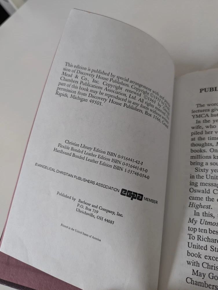 My Utmost for His Highest Daily Devotional Leather Journal Oswald Chambers In very good condition. Some writing on the very first page...