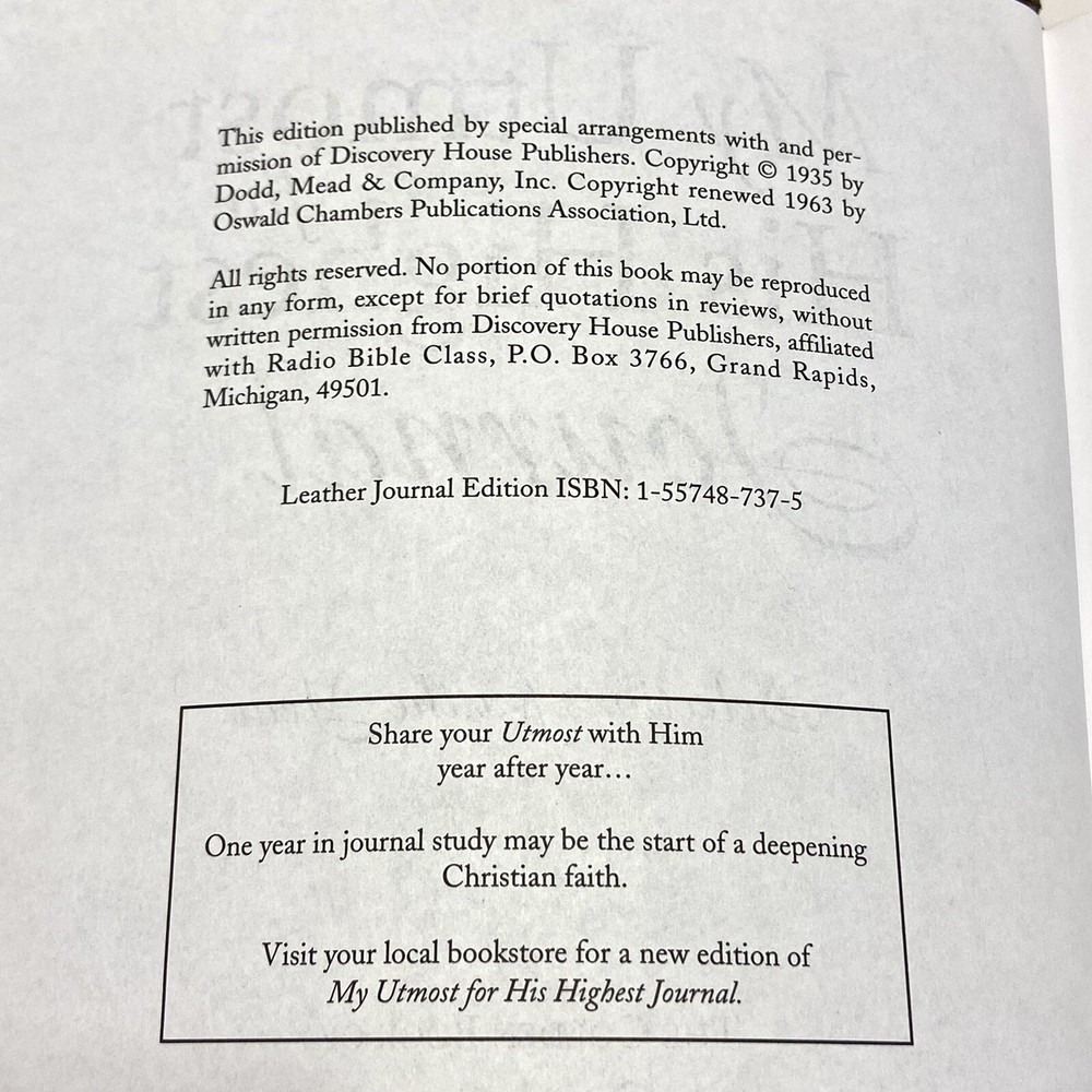 My Utmost for His Highest Daily Devotional Leather Journal.. Please see pictures for exact condition. No writing on the inside....