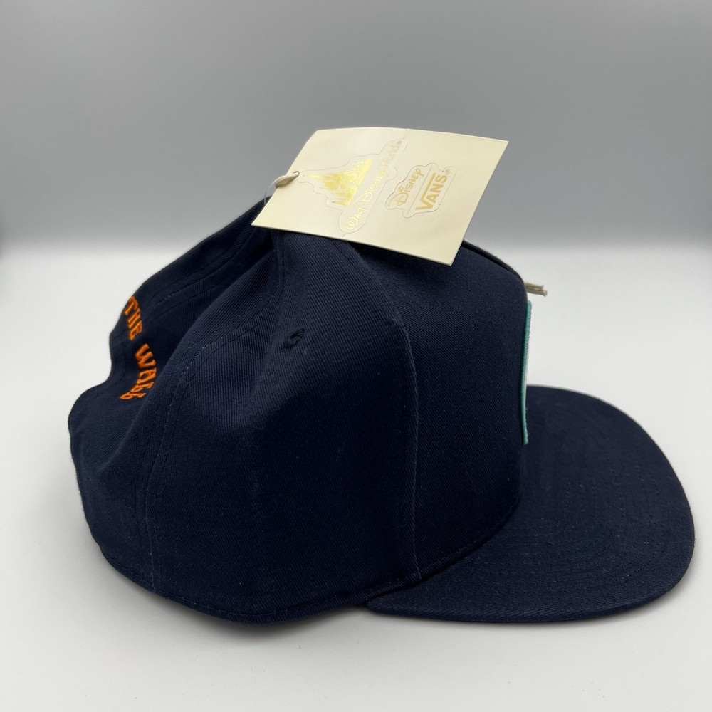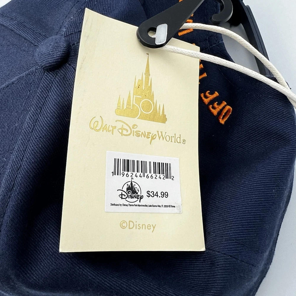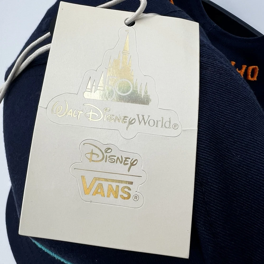 Celebrate a magical milestone with the Disney Parks 50th Anniversary Vans Off The Wall Snap Back Mickey Cap Hat. This special edition hat features the iconic Mickey Mouse silhouette, paying homage to Walt Disney World's rich history. The navy blue cap is adorned with vibrant details that capture the spirit of Disney, making it a delightful addition to any fan's collection. Designed for unisex wear and constructed with quality materials, this hat is a versatile accessory for any Disney enthusiast. Whether you're visiting the theme parks or just showing off your love for the franchise, this cap is a contemporary collectible that embodies the timeless charm of Disney. It's a must-have for those who hold the magic of Disney close to their hearts.