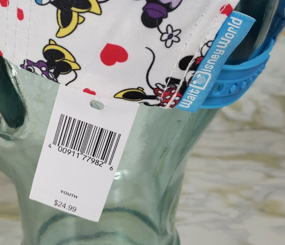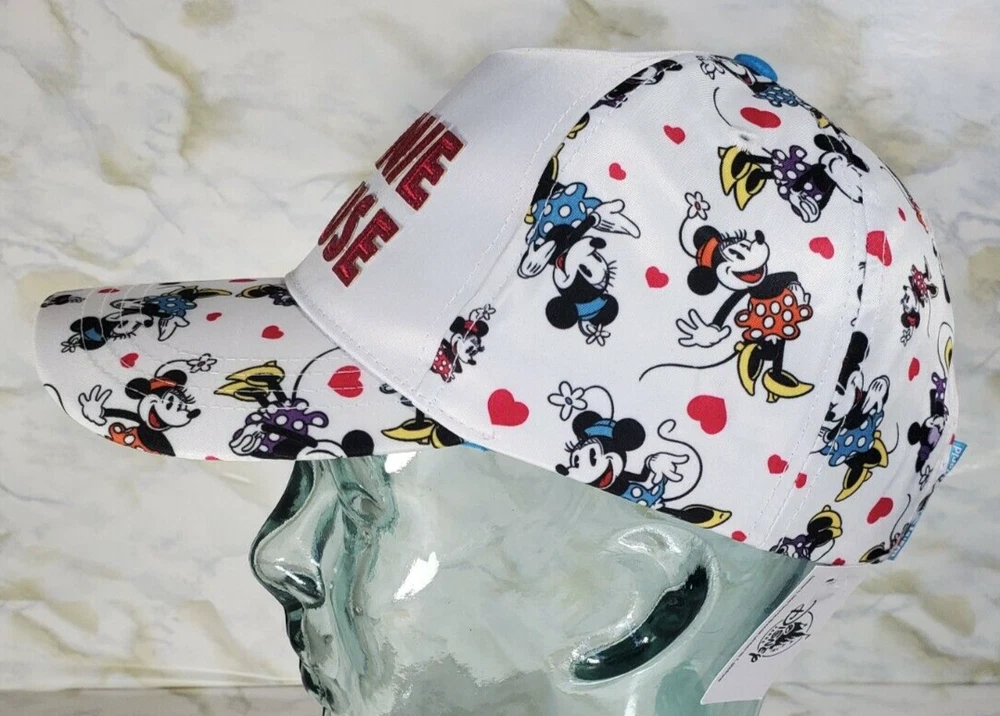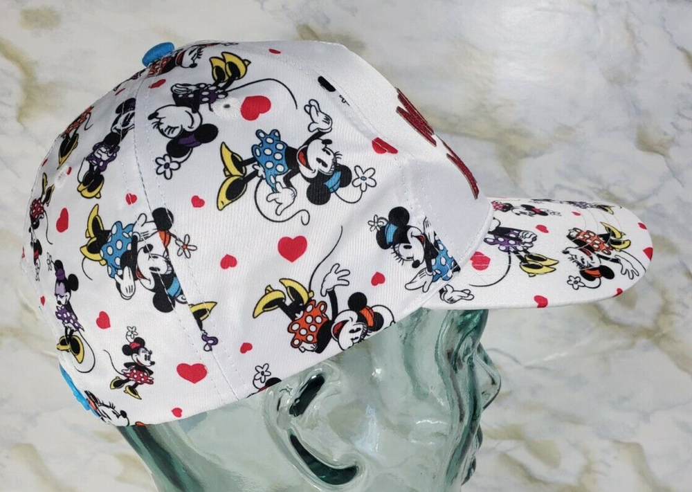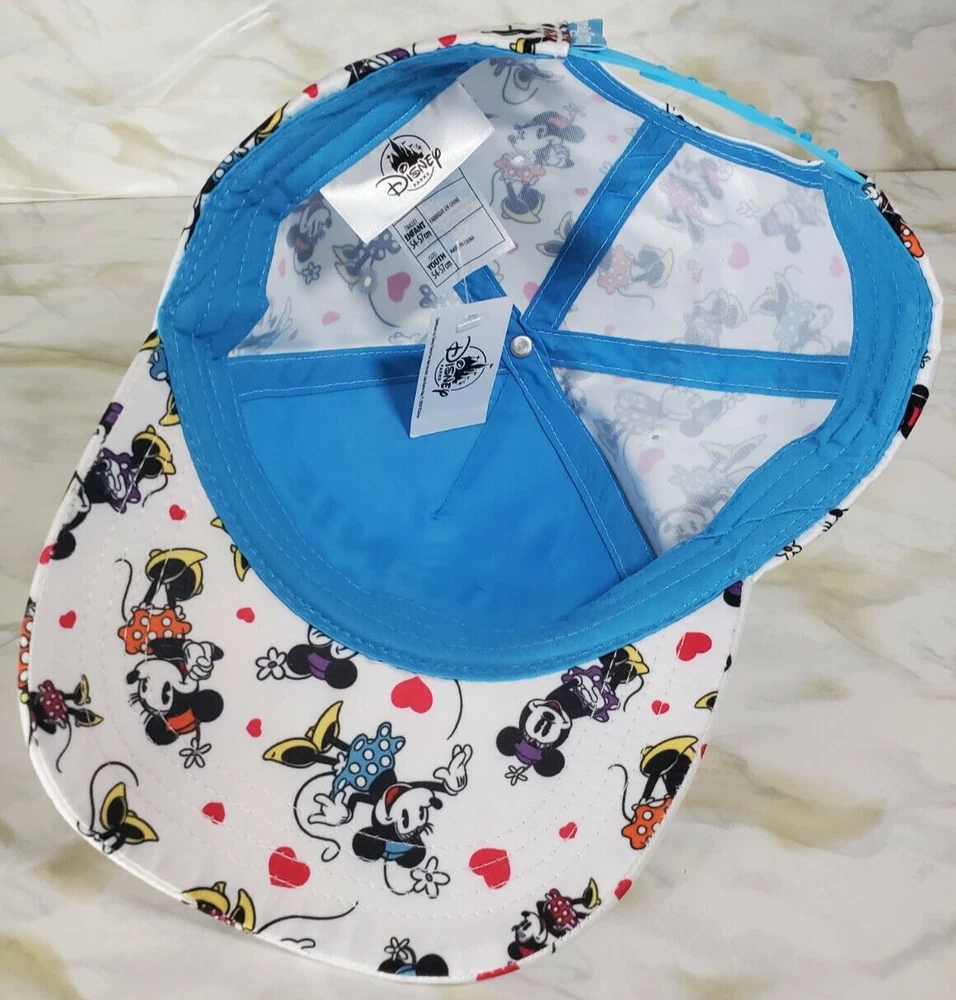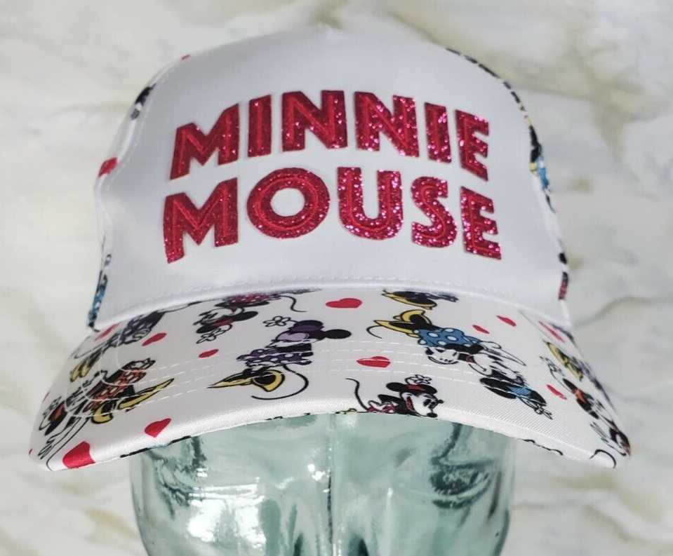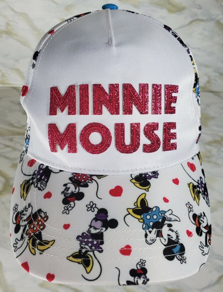 NEW Disney Parks WDW Minnie Mouse Glitter Spellout Hearts AOP Youth Size Cap Hat...