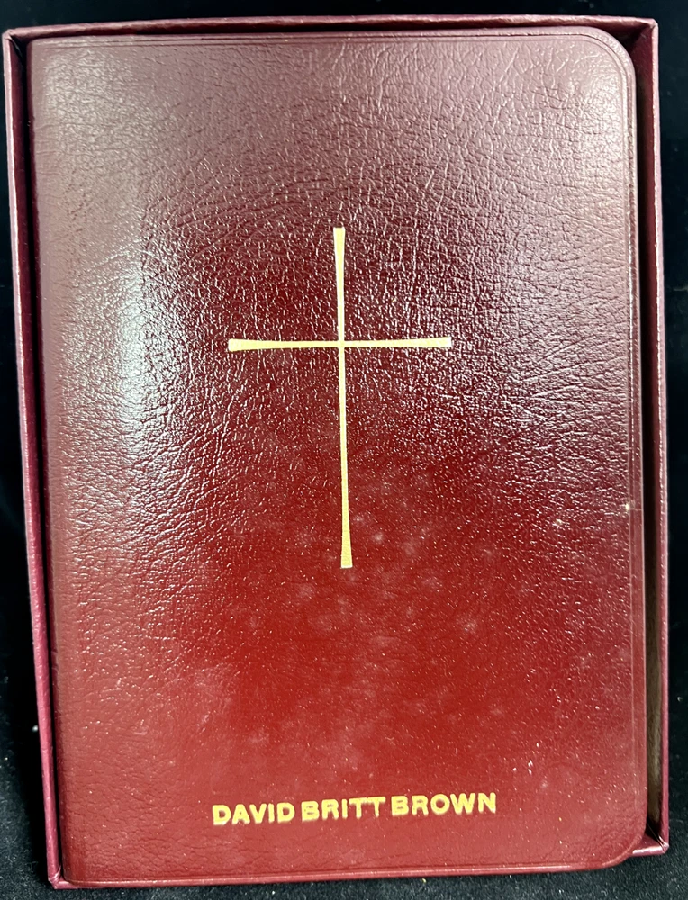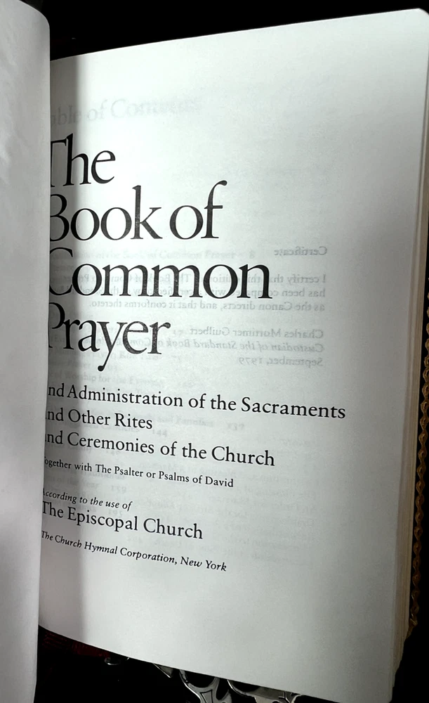EPISCOPAL BOOK OF COMMON PRAYER BOUND IN GENUINE LEATHER. NEW CONDITION AND NEVER USED. THERE IS A NAME PRINTED IN GOLD ON THE COVER AND ONE PAGE HAS AN INSCRIPTION FROM THAT PERSON'S GRANDPARENTS IN ...