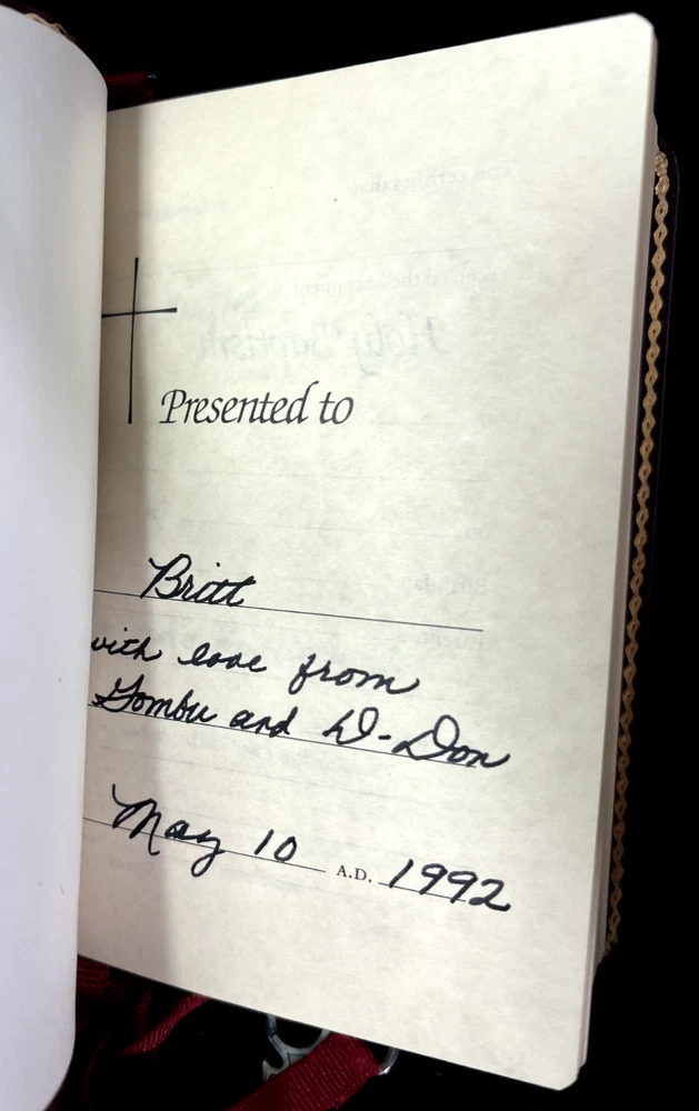 EPISCOPAL BOOK OF COMMON PRAYER BOUND IN GENUINE LEATHER. NEW CONDITION AND NEVER USED. THERE IS A NAME PRINTED IN GOLD ON THE COVER AND ONE PAGE HAS AN INSCRIPTION FROM THAT PERSON'S GRANDPARENTS IN 1992. IN PERFECT CONDITION.