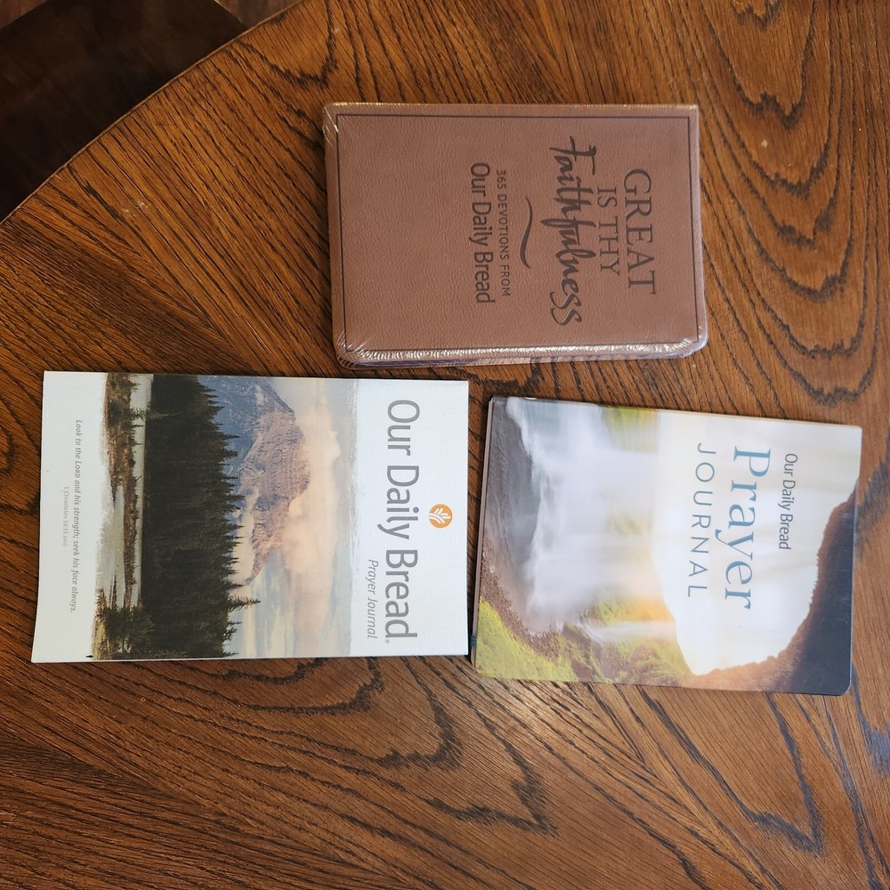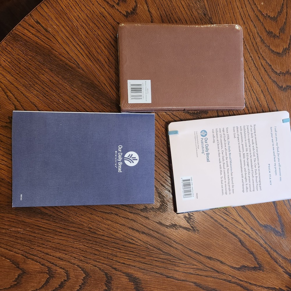 NEW Lot 3 NEW Books Our Daily Bread Year Leather Devotional & Prayer Journals. Books as follows: Great is Thy Faithfulness Leather bound - 365 Devotions from Our Daily Bread Our Daily Bread Prayer Journal -mountain scene - (has slight crease on right side from shipping) Our Daily Bread waterfall scene Prayer Journal PLEASE REVIEW PHOTOS TO SEE WHAT YOU ARE BIDDING ON. PICTURES ARE PART OF MY DESCRIPTION SO PLEASE ZOOM IN ON PHOTOS TO SHOW DETAILS, CONDITIONS, GRAPHICS, MAKER (IF APPLICABLE) AND ANGLES. ALSO PLEASE ASK ANY QUESTIONS PRIOR TO BIDDING IF YOU NEED ANY ANSWERS. I MAKE NO WARRANTIES OR IMPLY ANYTHING OTHER THAN WHAT IS IN THE DESCRIPTION AND PHOTOS. Items as shown in photos. Smoke free home. SEE MY CONCURRENT AUCTIONS FOR OTHER GREAT ITEMS. I WILL COMBINE SHIPPING TO SAVE YOU $$ IF YOU DO WIN MORE THAN ONE OF MY AUCTIONS, PLEASE WAIT FOR A COMBINED INVOICE BEFORE YOU PAY (SO THAT I CAN COMBINE SHIPPING). Good Luck!! Comes from a pet friendly home and smoke-free environment. Thanks for looking and have a GREAT day! Ephesians 2:8-10…..For by grace are ye saved through faith; and that not of yourselves: it is the gift of God: Not of works, lest any man should boast. For we are His workmanship, created in Christ Jesus unto good works, which God hath before ordained that we should walk in them.