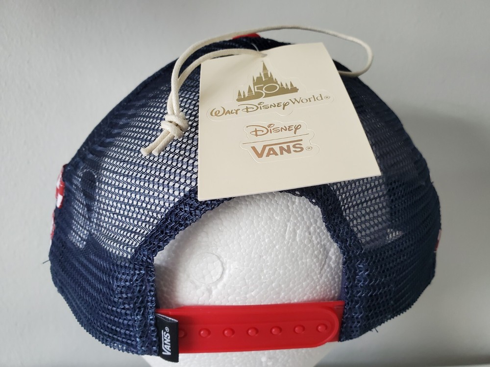 You are buying a BRAND NEW RARE VANS x Walt Disney World 50th Anniversary Florida Flat Brim Trucker Hat. The color scheme is red, white & blue. This is an adjustable snapback hat. I cannot say enough about this hat. They are AMAZING! ~These do not come with the original box~ *PLEASE READ* ALL ITEMS ARE AUTHENTIC. THESE ARE NOT KNOCK-OFFS. Items will ship within 48 hours of closing. It will come well wrapped and securely shipped. **Please message me with any issues before leaving neutral or negative feedback** THANK YOU FOR YOUR TIME, AND PLEASE CHECK OUT MY OTHER AUCTIONS.