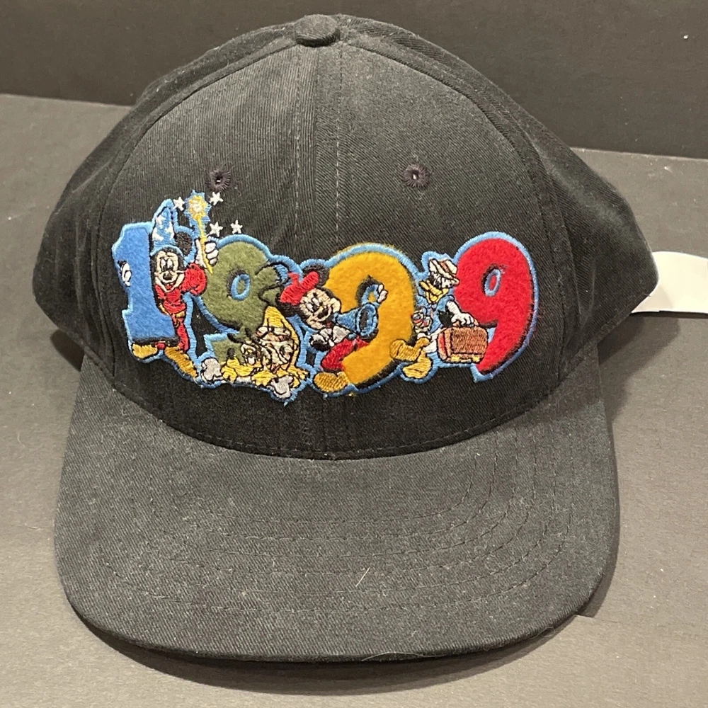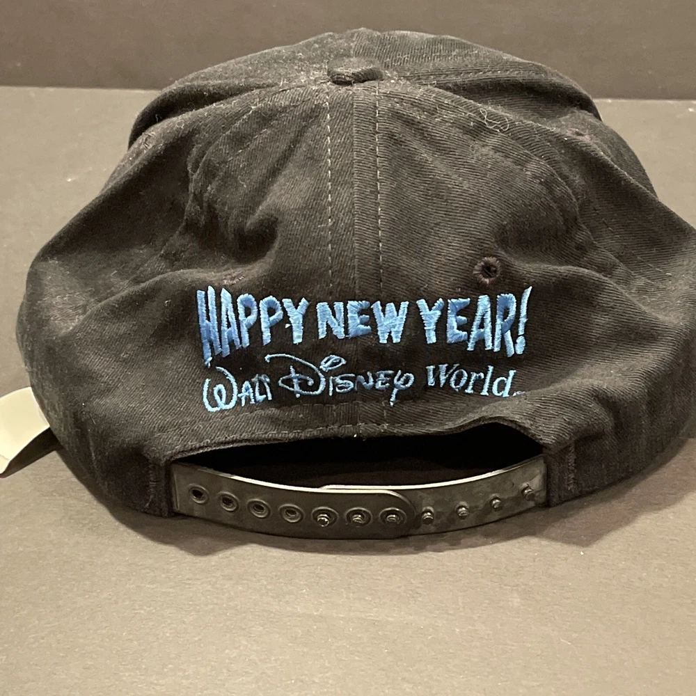 This auction is for a NEW Walt Disney World 1999 Happy New Year Black Adjustable Baseball Cap NWT Brand New with tag. Adjustable back. This is a beautiful and nostalgic cap. Shipping and handling is $6.00 USPS. From a smoke free home. Stored with other Disney collectibles. Thanks for checking out my auction. Please visit my store, Herc's Forum Shoppe, for more Disney merchandise and collectibles.