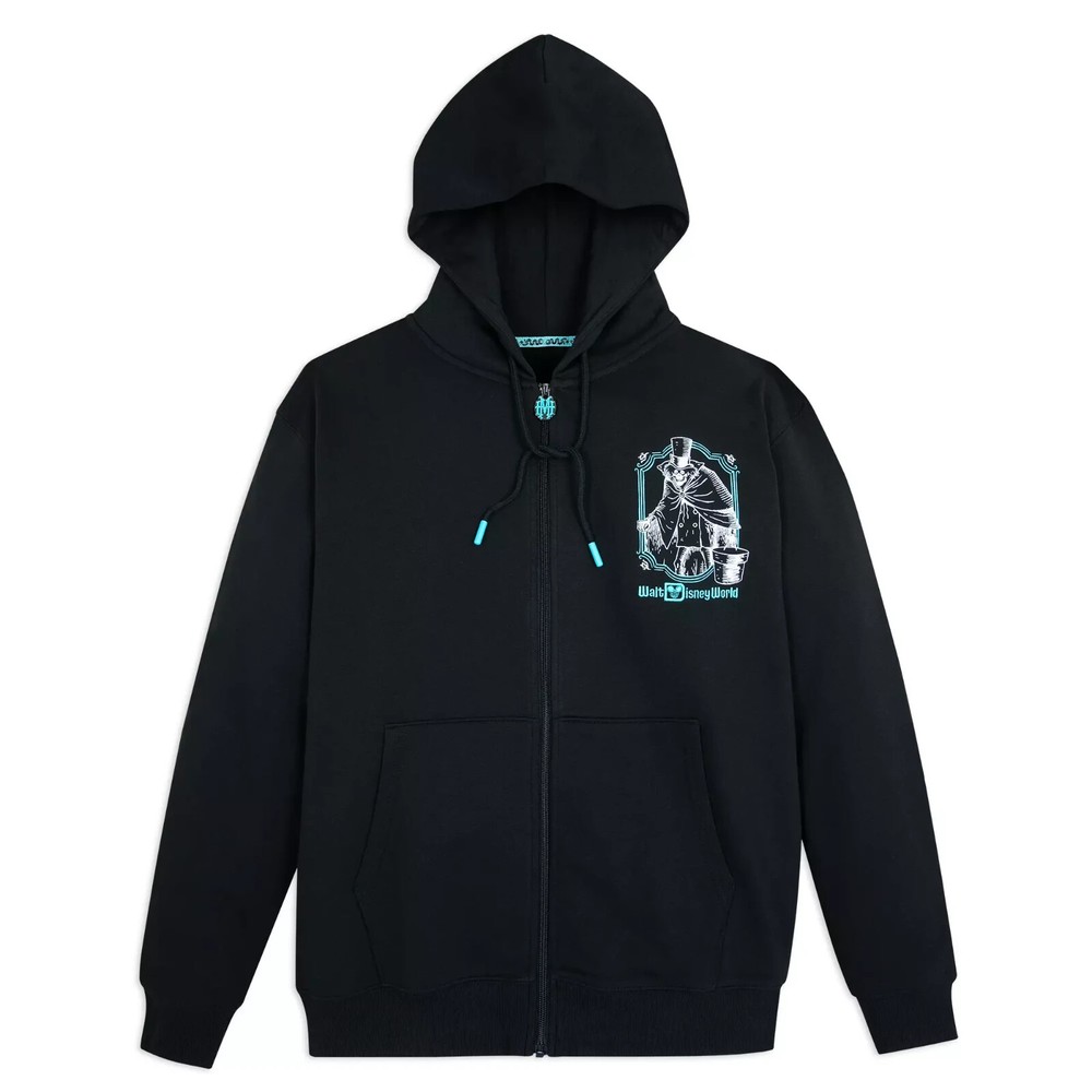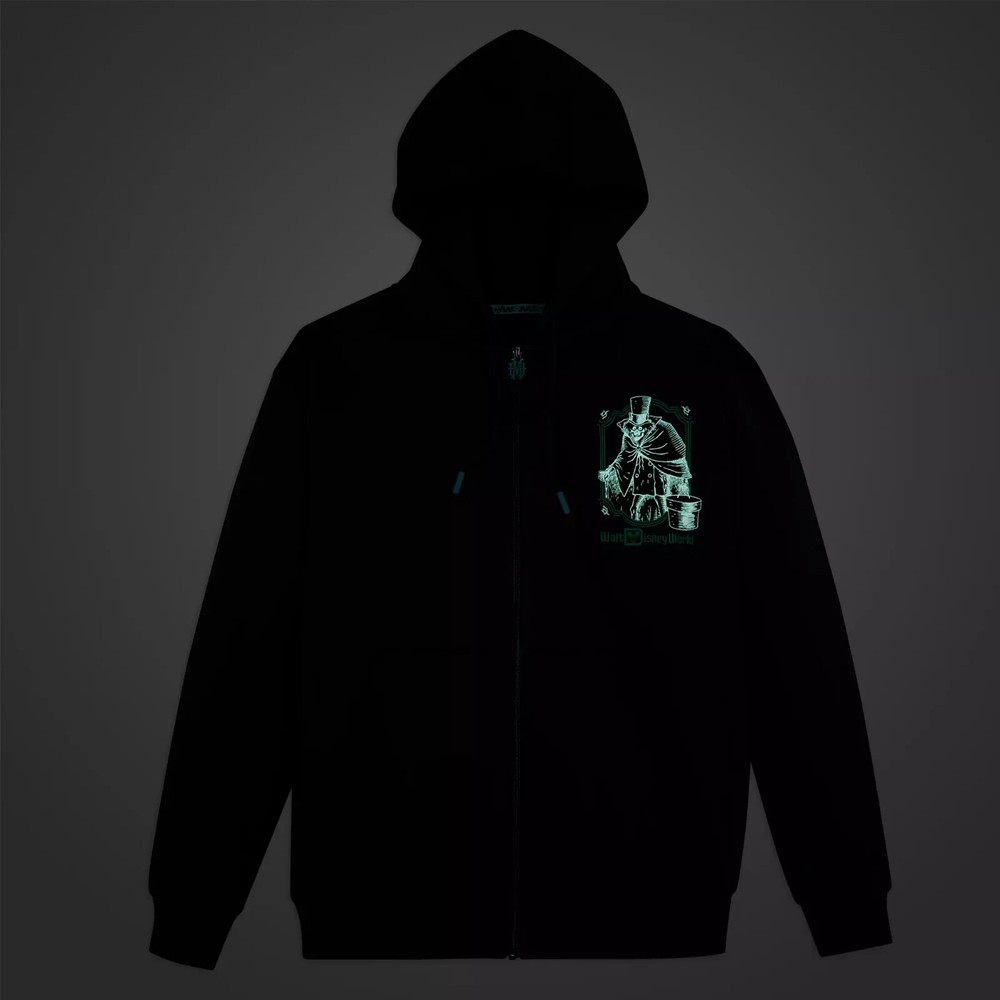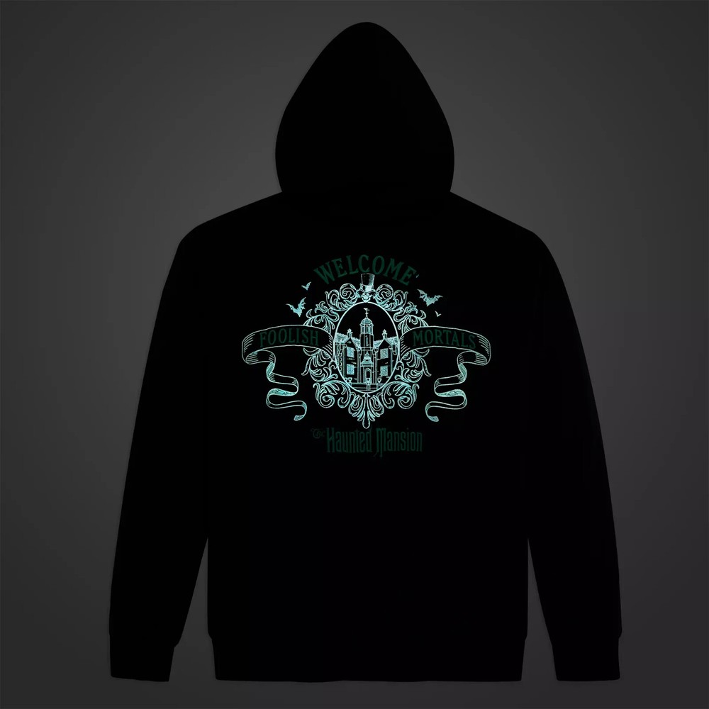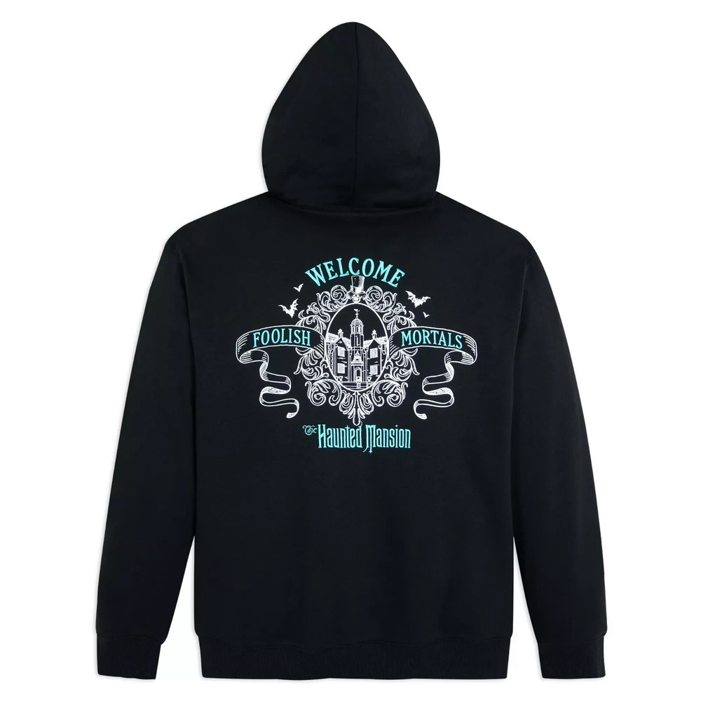 The Haunted Mansion's cautionary invitation ''Welcome Foolish Mortals'' is emblazoned on the back of this ghoulish garment along with an image of the notorious attraction at Walt Disney World. Glow-in-the-dark detailing adds a spectral touch while the fleece fabrication interior will keep you warm when your visit prompts the chills. Magic in the details Created especially for Walt Disney World Resort Adult Size XL Front features screen art of the Hatbox Ghost and Embroidered Walt Disney World logo Back features screen art of The Haunted Mansion at Walt Disney World Embroidered ''Welcome Foolish Mortals'' and ''The Haunted Mansion'' logo White screen art glows in the dark Full zip front with enamel ''HM'' zip pull Lined hood with drawstring tie featuring glow-in-the-dark end Pouch pockets Ribbed cuffs and hem Fleece fabrication interior Printed back neck tape Inspired by Disney's The Haunted Mansion attraction at Walt Disney World Part of The Haunted Mansion Classic Collection The bare necessities 80% cotton / 20% polyester Imported Item No. 5201059750285M