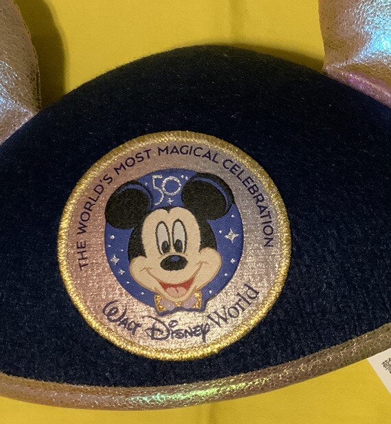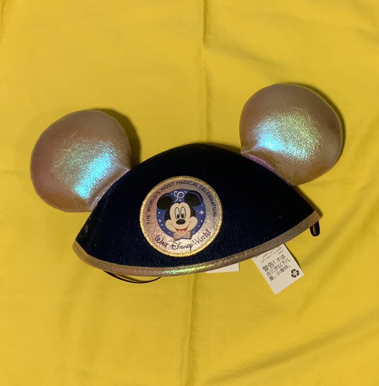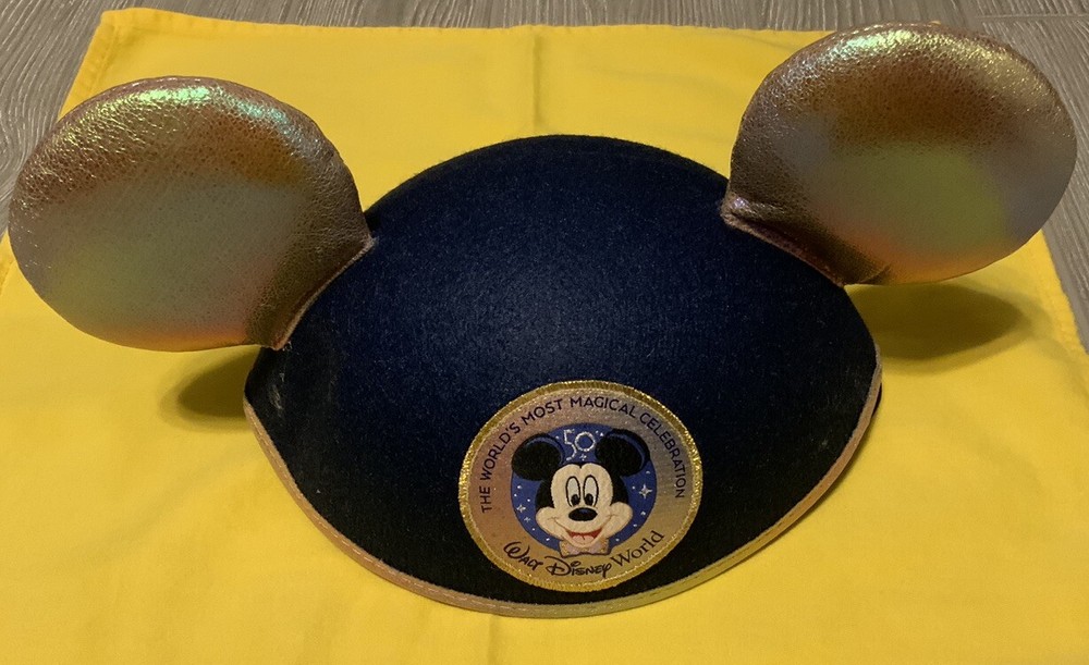 Show off your love for Walt Disney World with this Mickey Mouse Ear Hat, featuring the iconic design. Perfect for the 50th Anniversary celebration, this blue hat with shimmering ears is a must-have for any Disney fan. It fits all sizes and is suitable for both men and women, making it a versatile addition to any collection. The hat is made by Disney and features the franchise's well-known characters and themes, including Mickey Mouse. It's a great way to show your support for Disney while also staying stylish and comfortable. No defects or damage Smoke free/pet free home