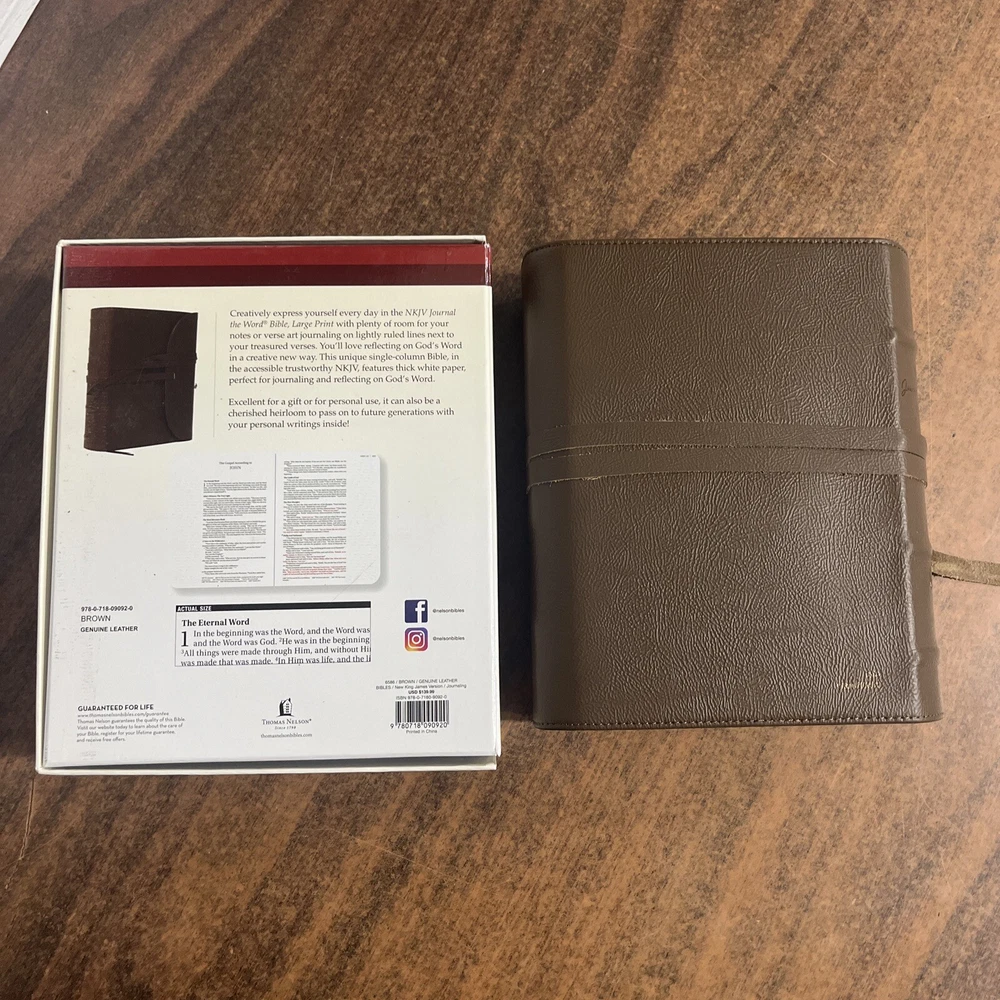 | Book Title | NKJV, Journal the Word Bible, Large Print, Premium Leather, Brown, Red Letter Edition : Reflect, Journal, or Create Art Next to Your Favorite Verses |