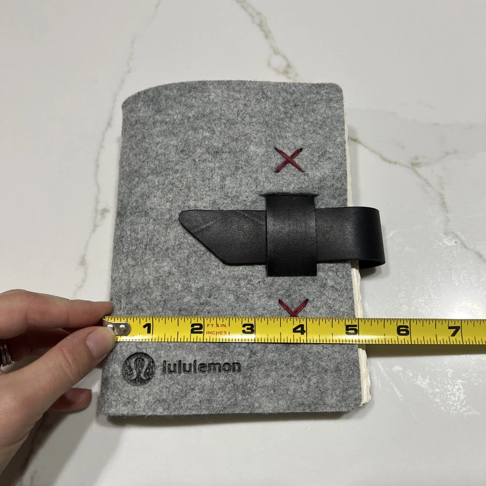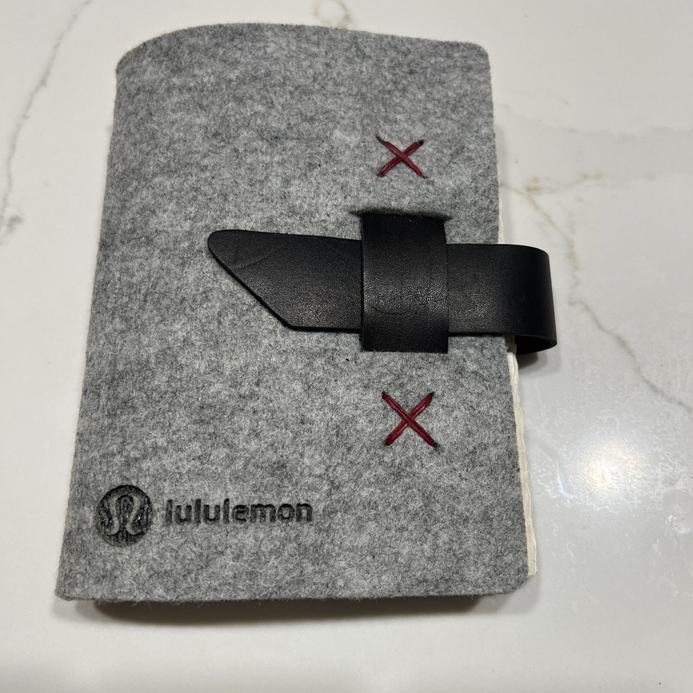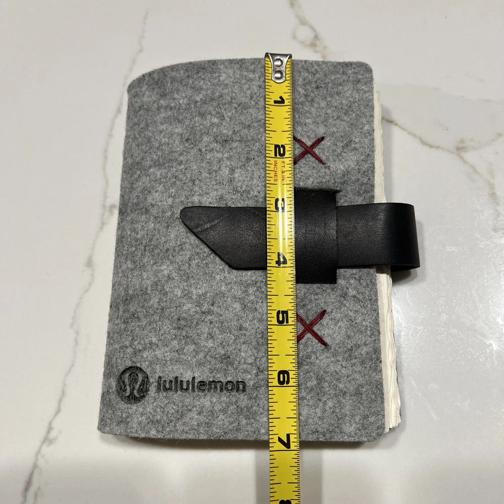 NWOT RARE LULULEMON Gray Felt Black Leather Bound Journal Notebook Promotional. New! Made by traverse Lululemon promotional felt bound journal, no tags, not used Raw edge paper See photos for measurements and details Sold as is Slight scratches on leather from storage