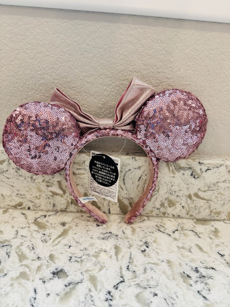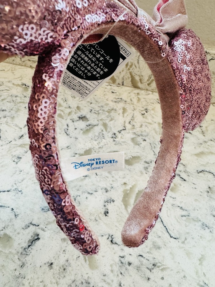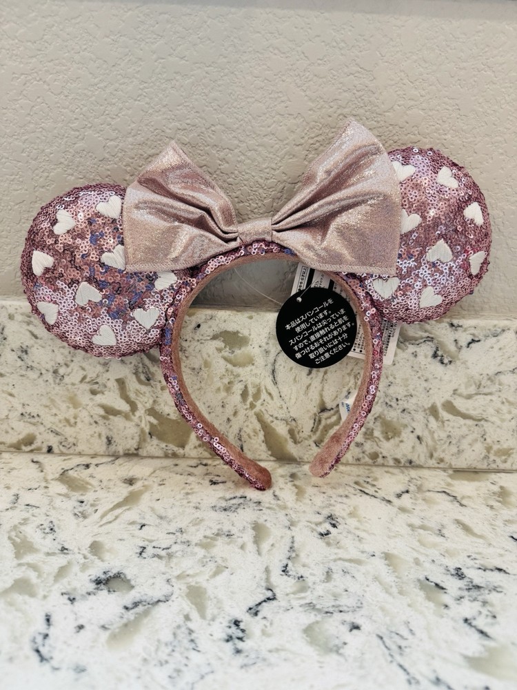 NWT- Tokyo Disney Pink Heart Sequins Minnie Ears
