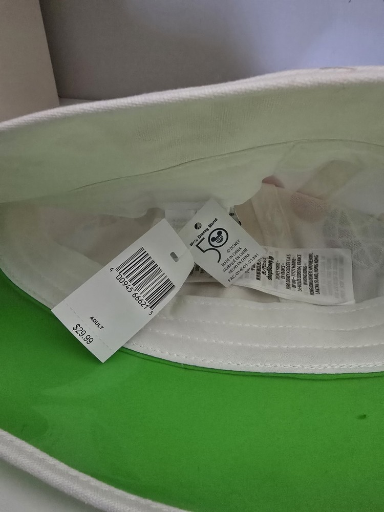 The Walt Disney World 50th Vault Balloon Bucket Hat with Green Visor in size Adult is a collectible item that celebrates the iconic theme park's 50th anniversary. Featuring the beloved Mickey Mouse character, this hat is a must-have for Disney enthusiasts. Made in China as part of the Disney franchise, this unique accessory is perfect for wearing to special occasions or display in a collection. The combination of the Vault Balloon design and Mickey Mouse theme adds a nostalgic and fun touch to any outfit.