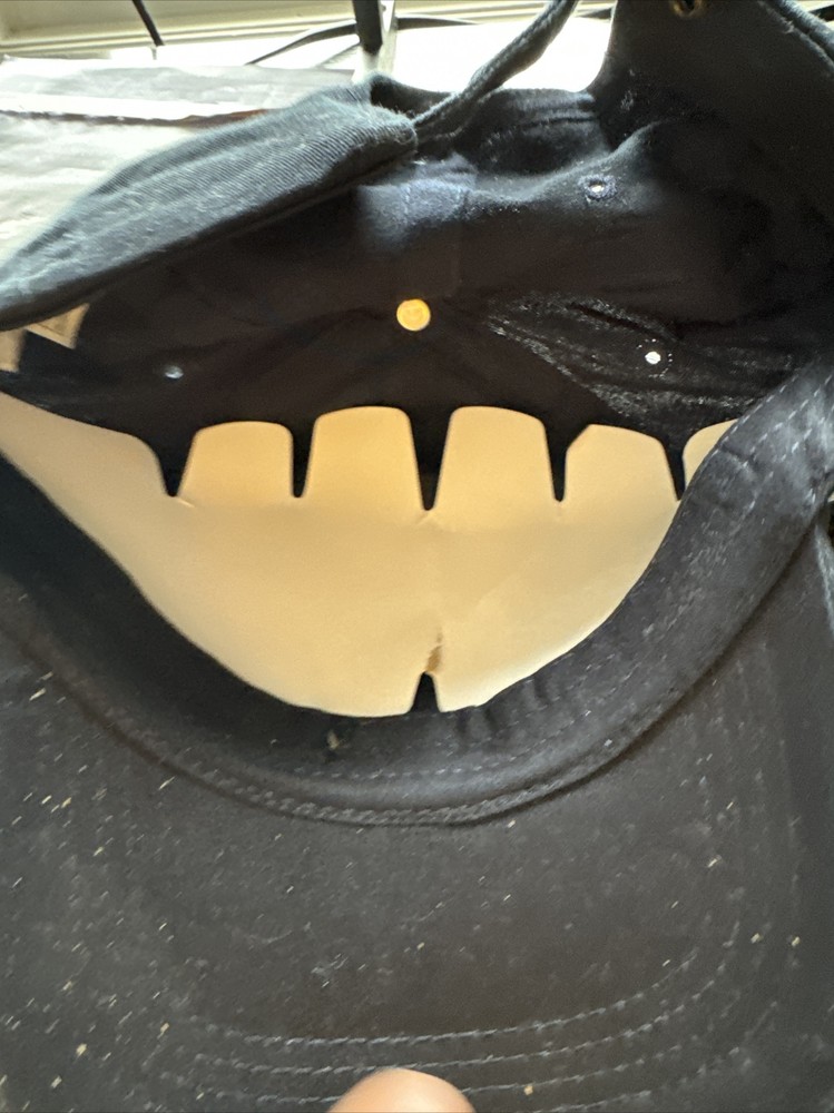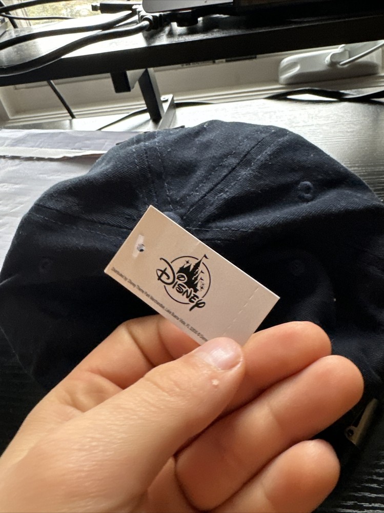 This hat is brand new, however I wasn't able to return due to the amount of time past since purchase. There are no flaws, stains, or problems with the hat, and it is New with tags. The hat is completely navy with the words Walt Disney World and the castle on a brown patch in the center front of the hat. Let me know if you have any questions about the listing.