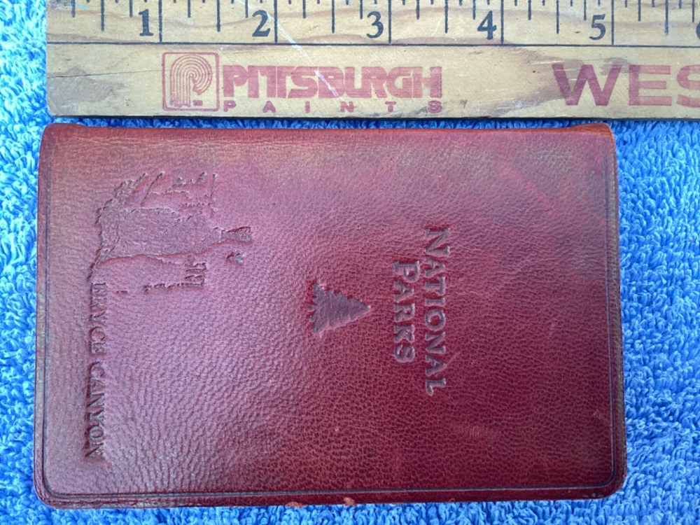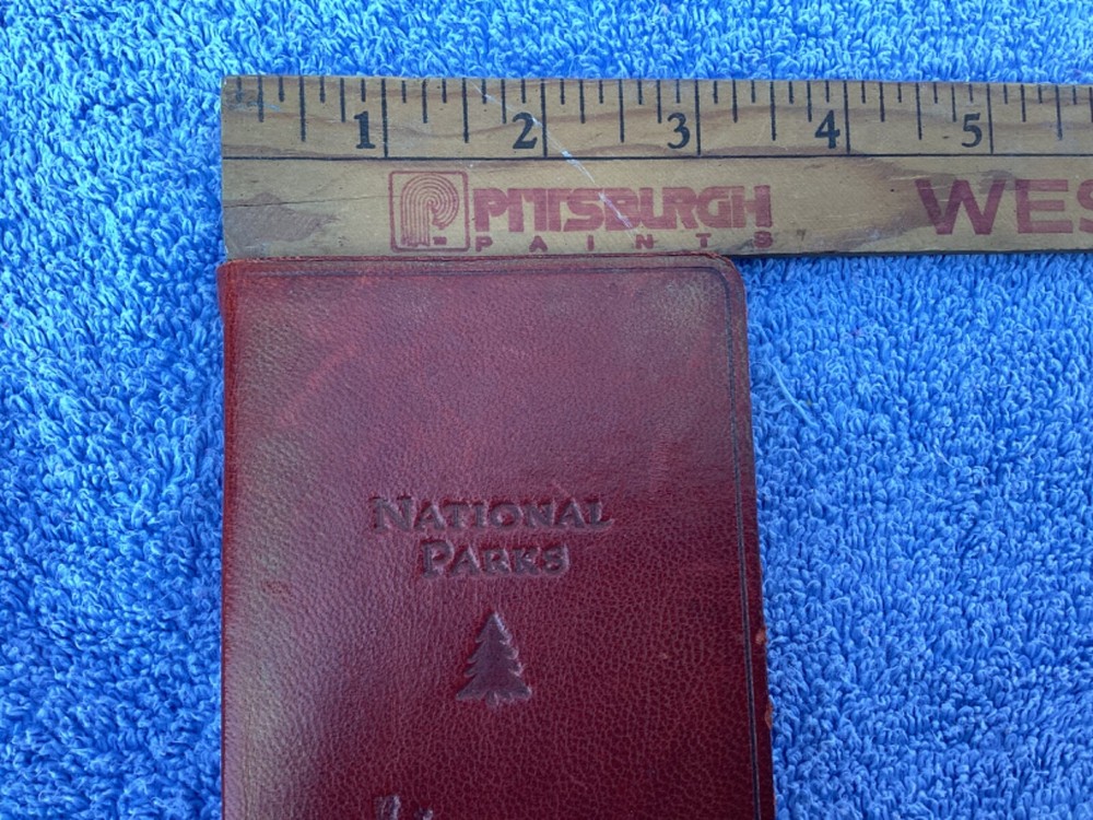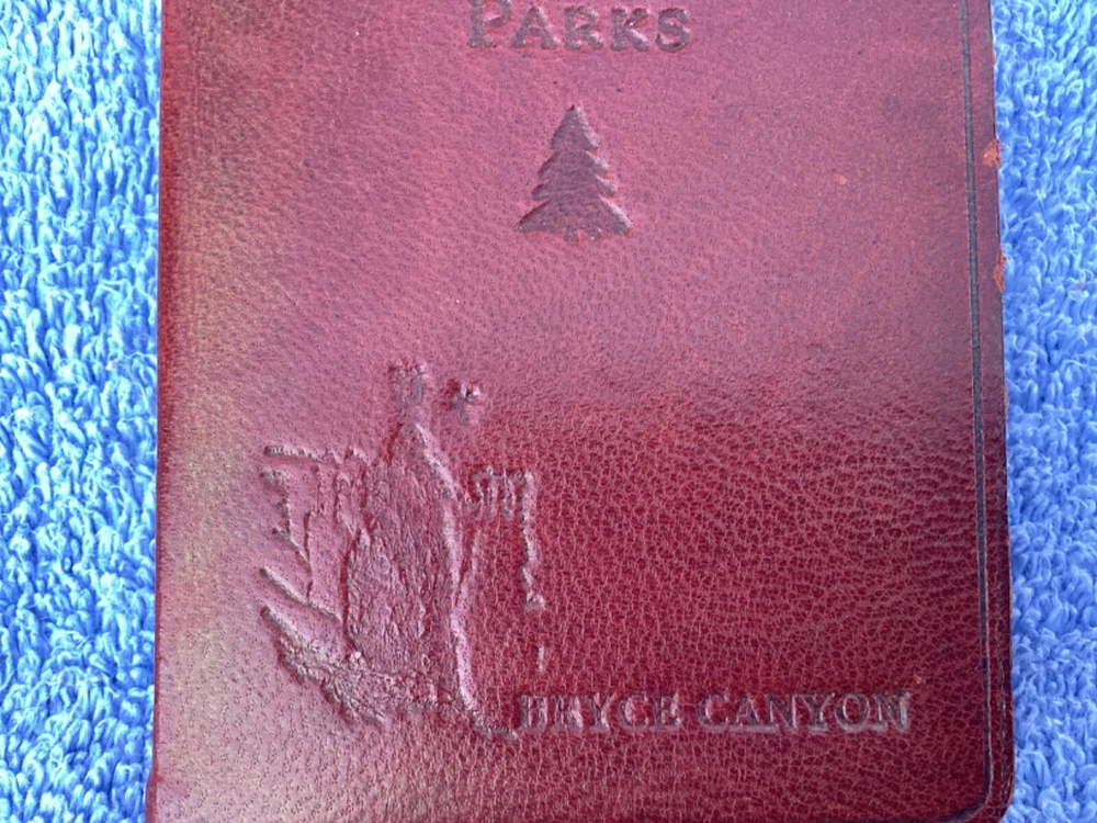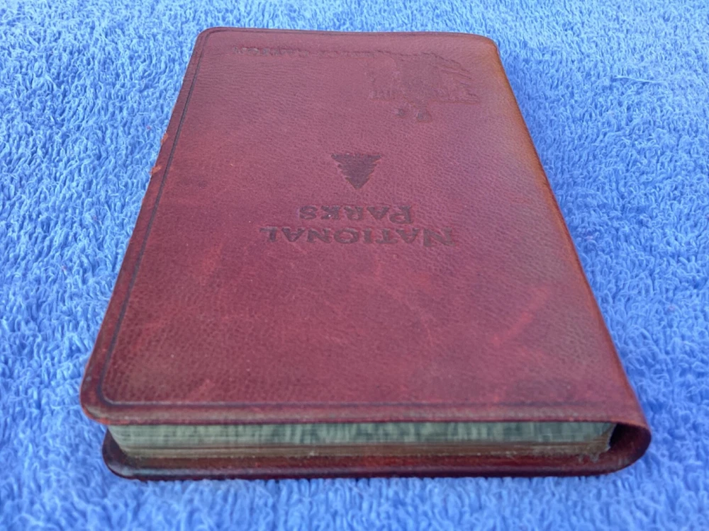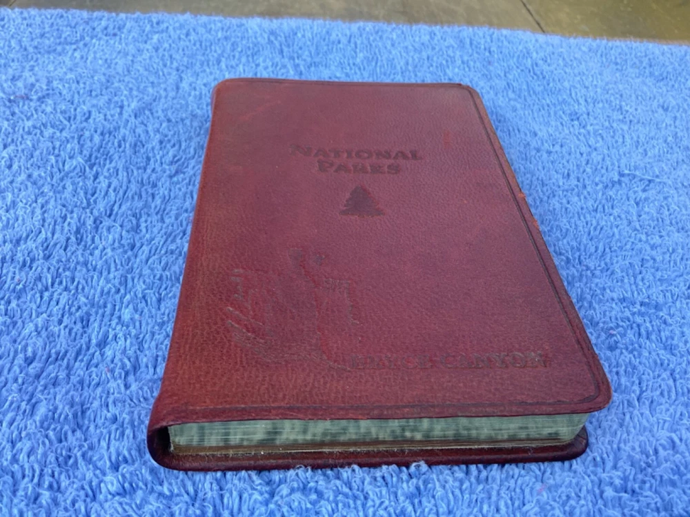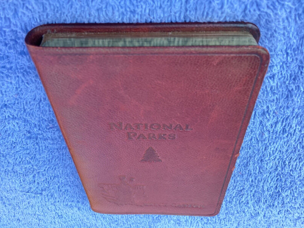 hi, up for sale is a pocket leather bound, national parks, guide book and journal. Publication date is 2007. inscribed on the cover is the name Bryce Canyon. The page edges are gold. This pocket sized book contains color, maps and Summaries of all the national parks. it simply has the park. Bryce Canyon inscribed on the cover because that is where this book was purchased. in the back of the book are lined blank pages for personal journaling. This book is in very nice condition. I’d have to say that the only imperfection is the shelfware on the front cover near the right edge. Also the color of the leather cover is a deep reddish rust color. The color is actually very pretty. From a smoke-free home. Only ship within the USA Thanks for looking and have a nice day
