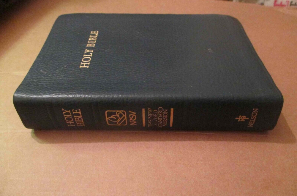Nelson Duke NRSV Bible Genuine Leather A little fading of letters on spine Good condition A little writing on a few pages Some highlighted passages but not a lot