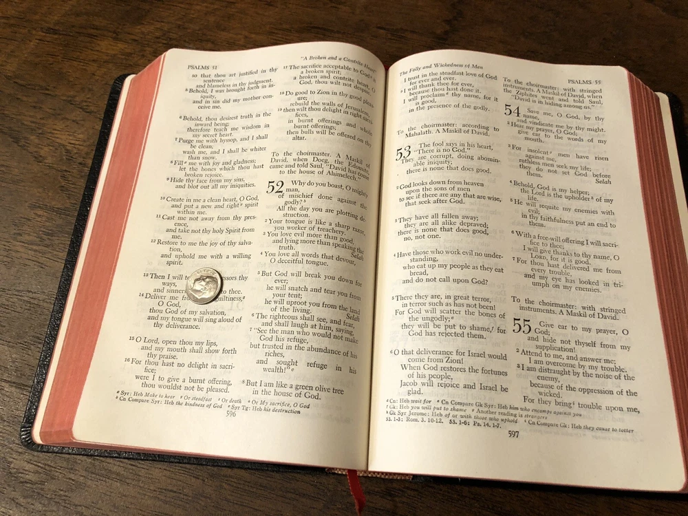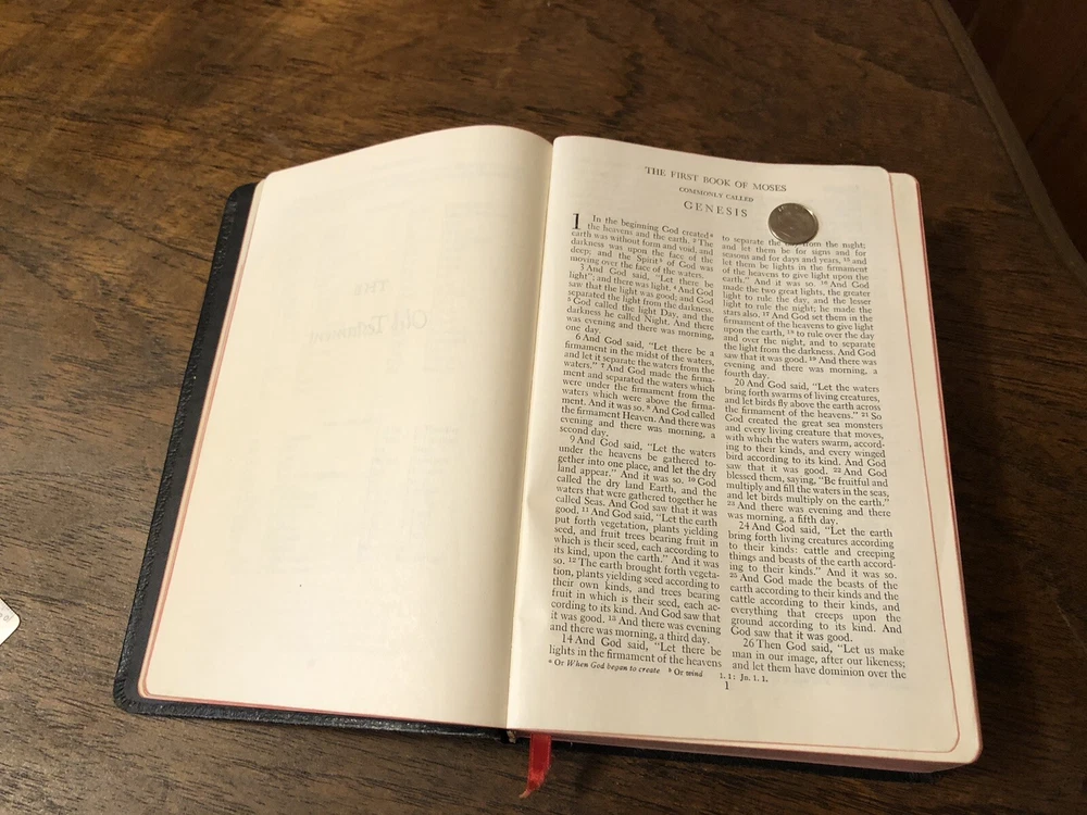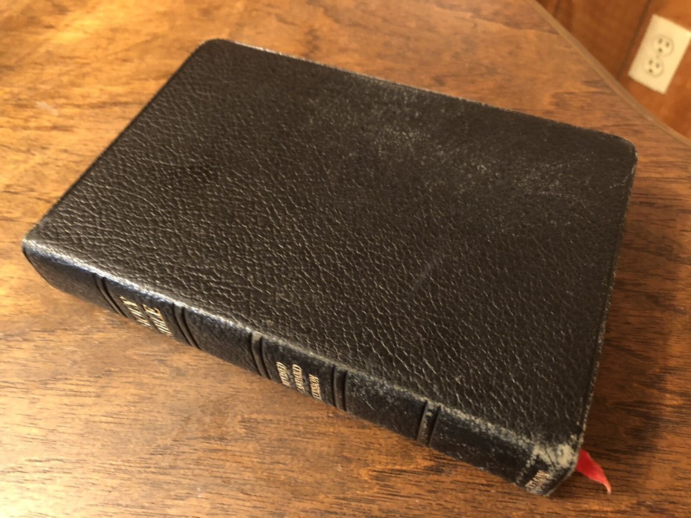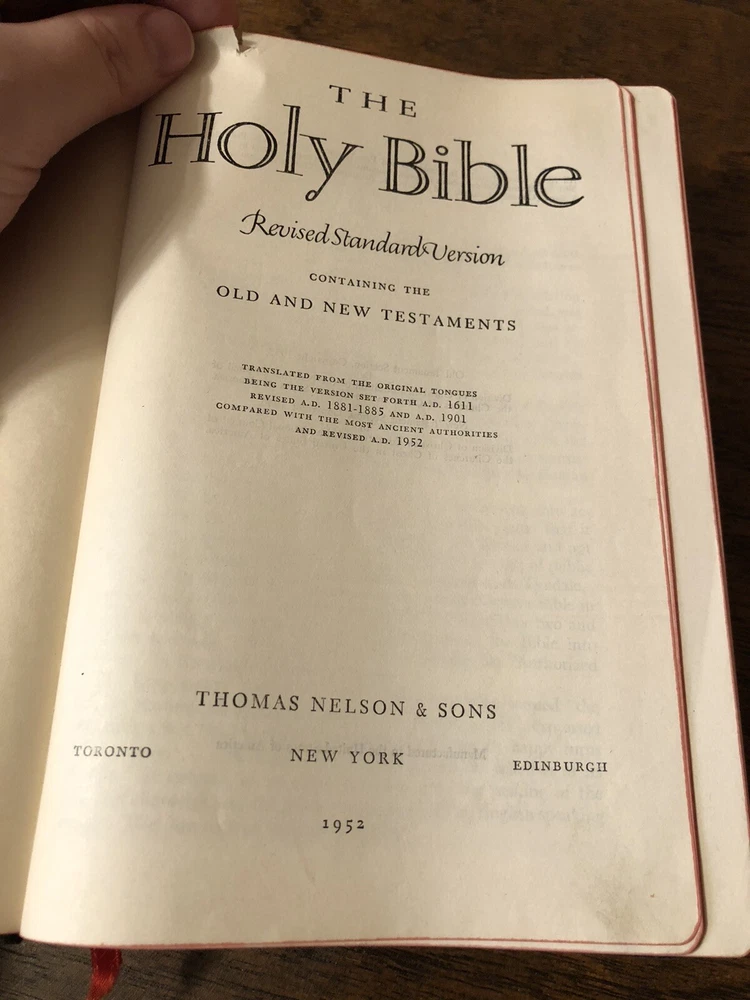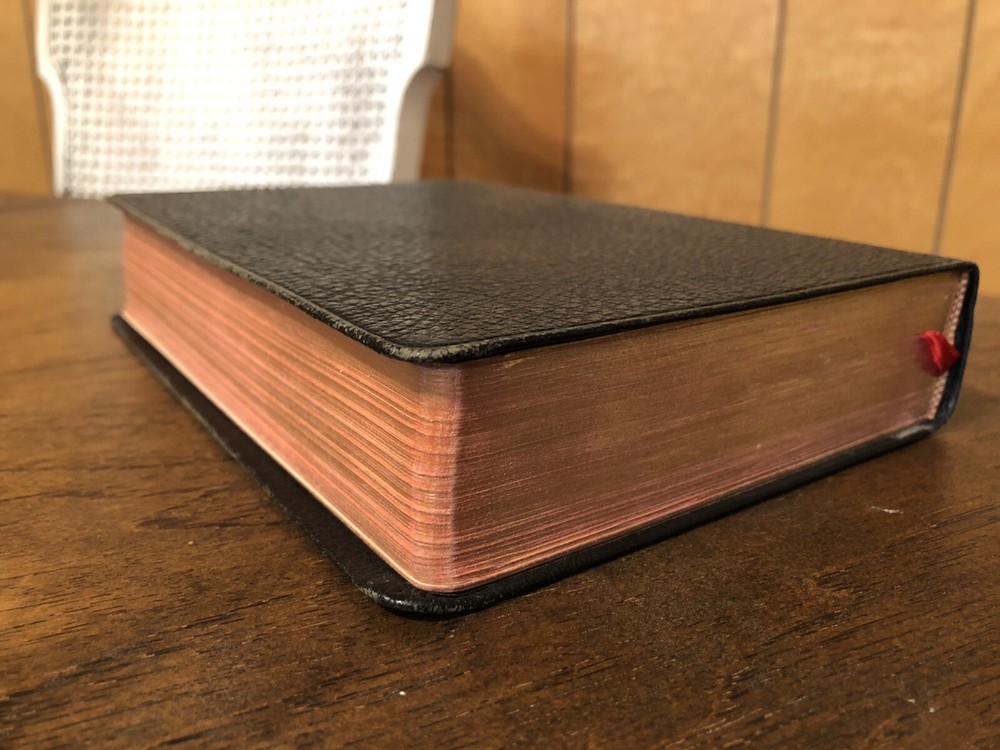 Nelson RSV Revised Standard Version Bible Genuine Leather 3807 Text Edition This is a gently read RSV text edition in genuine leather with gilt page edges in excellent condition. This is the classic text edition with opaque paper, clear typeface, and a very pleasant reading experience. The leather is flexible, smooth, but has consistent abrasions. There are rather consistent abrasions to the edges and the corners. The art-gilt is in great condition, though, with some general aging. This is a classic RSV text, but rarely found without any writing at all. Since there is no writing anywhere in the text that I could find, this would make a great Bible for use or rebind. It has one exposed signature at the back, but that’s easily fixed with some flexible glue or will be fixed with any decent rebinder. It was gently and carefully used, from what I can tell. I found a slight tear at the blank intro page and one at the top of the publisher page. Sewn Black letter Double column Text edition Gilded page edges 8.5 x 5.75 x 1.5 inches Dime used for comparison Note: I do not accept returns unless the item was not as I described because of a mistake I made. If the item is smaller than you thought it would be (because you didn’t read the description with dimensions), that’s on you. I do not cancel orders for any reason, even if you accidentally ordered it. It takes about 3 steps to purchase an item, so if you paid for it, it’s yours. I make these annoying rules because so many customers have recently treated the purchase of items flippantly and I have to draw a line somewhere. Well, here it is. I always list any writing, stains, tears, or imperfection of any kind. And I always list the condition conservatively, so you should expect the item to be in better condition than listed. Unlike the vast majority of sellers out there, I refuse to hide imperfections through cleverly taken pictures or obscure descriptions. I try to include as many pictures as necessary to highlight the imperfections rather than the beauty of the items, which is part of why I have an elevated Seller Status and perfect feedback in which many consistently report back “just as described” or “better than described.” If I miss something by accident, please contact me so I can make it right. My flawless feedback should speak for itself, but you won’t be disappointed! Thank you for your business and God bless!