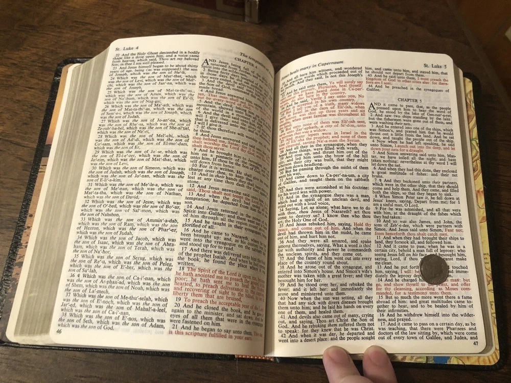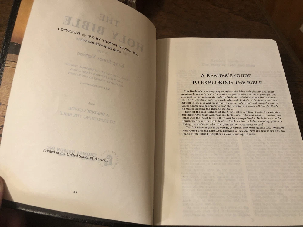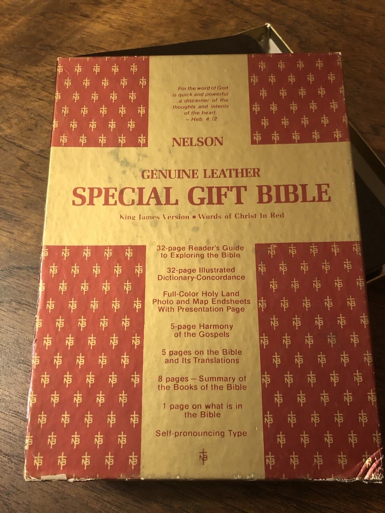 Nelson Special Gift Bible KJV King James Version Genuine Leather 176 As you can hopefully see from the pictures, this is a stunningly beautiful Nelson KJV in the Protestant canon in genuine, flexible, leather. It appears in near-perfect condition. It has near-perfect gilding, no writing except the presentation page, a box in excellent condition, and a tight text block. Pay attention to the pictures because they show how clear and consistent the Jewel the typeface is and how non-existent the ghosting or “bleed through” is. This is a very quality edition. The red letter is especially clear and red. It was unread or read very little. Would make a great rebind due to the quality of the paper and art gilt, though could be used well without as well. Red letter Verse setting 7.75 x 5.6 x 1 inches Dime used for comparison Note: I do not accept returns unless the item was not as I described because of a mistake I made. If the item is smaller than you thought it would be (because you didn’t read the description with dimensions), that’s on you. I do not cancel orders for any reason, even if you accidentally ordered it. It takes about 3 steps to purchase an item, so if you paid for it, it’s yours. I make these annoying rules because so many customers have recently treated the purchase of items flippantly and I have to draw a line somewhere. Well, here it is. I always list any writing, stains, tears, or imperfection of any kind. And I always list the condition conservatively, so you should expect the item to be in better condition than listed. Unlike the vast majority of sellers out there, I refuse to hide imperfections through cleverly taken pictures or obscure descriptions. I try to include as many pictures as necessary to highlight the imperfections rather than the beauty of the items, which is part of why I have an elevated Seller Status and perfect feedback in which many consistently report back “just as described” or “better than described.” If I miss something by accident, please contact me so I can make it right. My flawless feedback should speak for itself, but you won’t be disappointed! Thank you for your business and God bless!