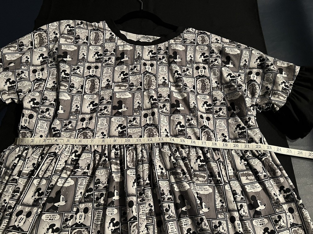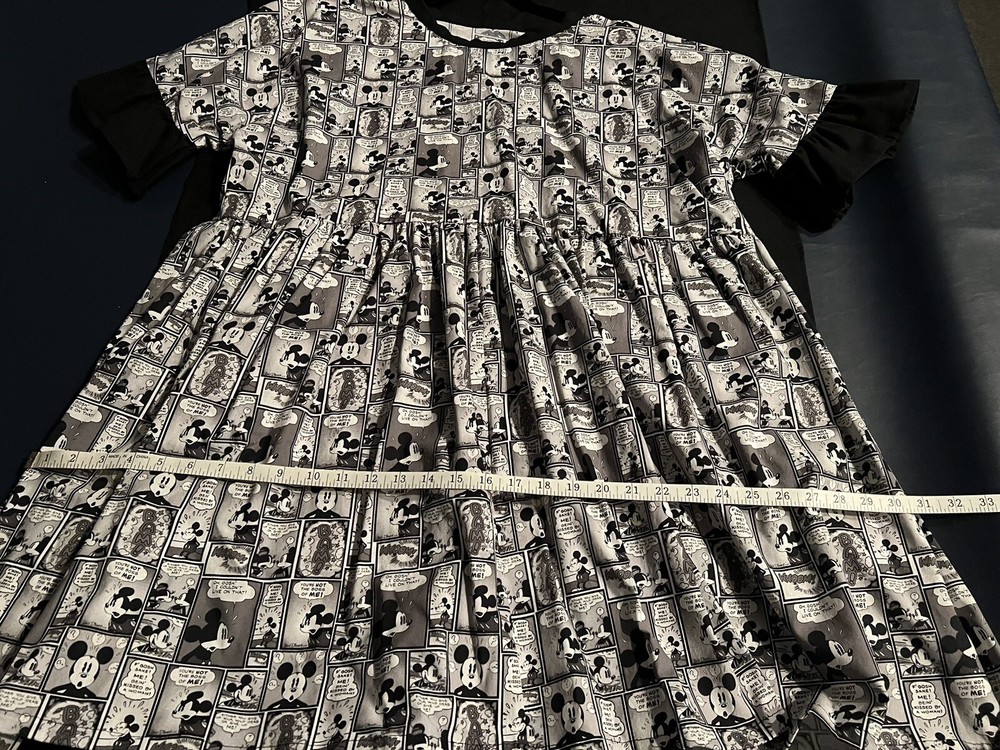 CLEARING THINGS OUT!! I have many items that need to go! Take advantage of my great prices! Listed here is a custom Disney Parks dress that was handmade for me but never worn. Features black and white Mickey comic strip print cotton fabric. Ruffle sleeve detail with oversized fit. Size is women’s oversized medium. Photos show measurements for reference. Also included is a pair of WDW Mickey ears to complete the look! Dress has been washed and line dried. NO OFFERS: Upon listing, I am not accepting offers because I am posting items at fair prices as well as paying shipping. In addition I am paying fees to eBay. I know everyone wants a deal but I am not trying to give items away. I am often receiving low ball offers and there’s a lot of work and fees involved in selling and so I am not accepting offers initially. AS IS: Items are accurately described and actual item(s) photographed. Anything needing further clarification, please ASK before purchasing! SHIPPING: Free shipping with service of MY choosing to continental USA. I package well and SHIP FAST! ALL SALES FINAL - I am a honest seller and have been with eBay as both a buyer and seller for nearly 25 years. I have 100% feedback and treat buyers as I expect to be treated . Thank you for your interest! I am now adding new items often, please take a moment to see if anything else appeals to you.
