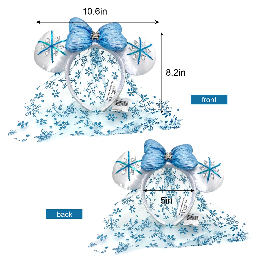 Absolutely love these Elsa-inspired Minnie ears! The blue snowflake design with diamond crystals is stunning—perfect for Disney trips or Frozen-themed parties. Fits both kids and adults comfortably, and the quality feels durable. The color is even prettier in person! Shipping was fast, and it arrived safely. A must-have for any Disney or Frozen fan!