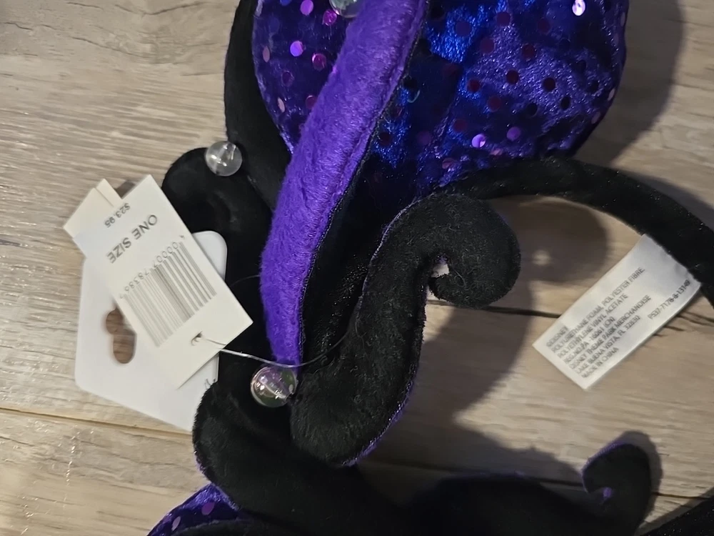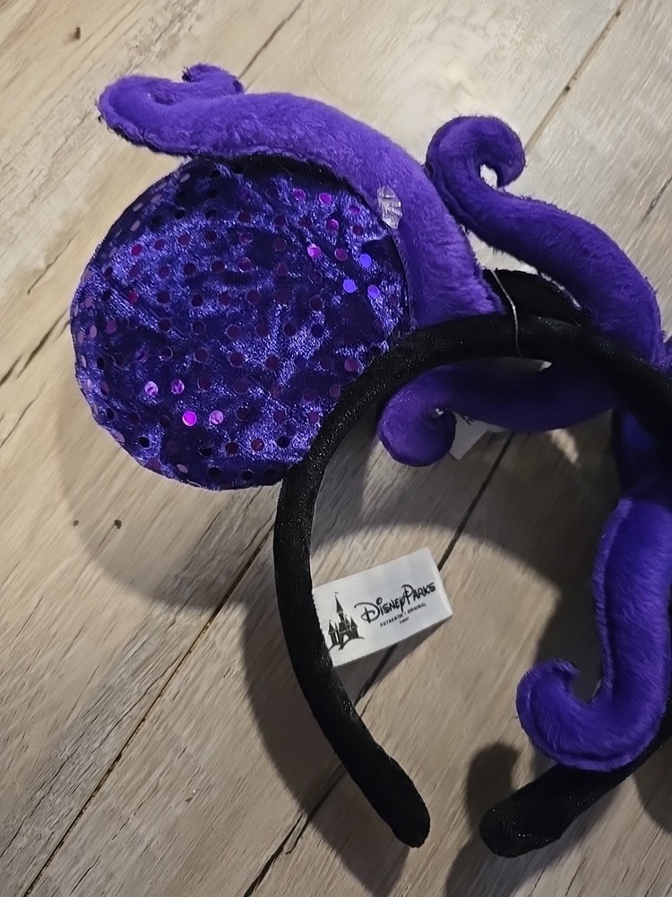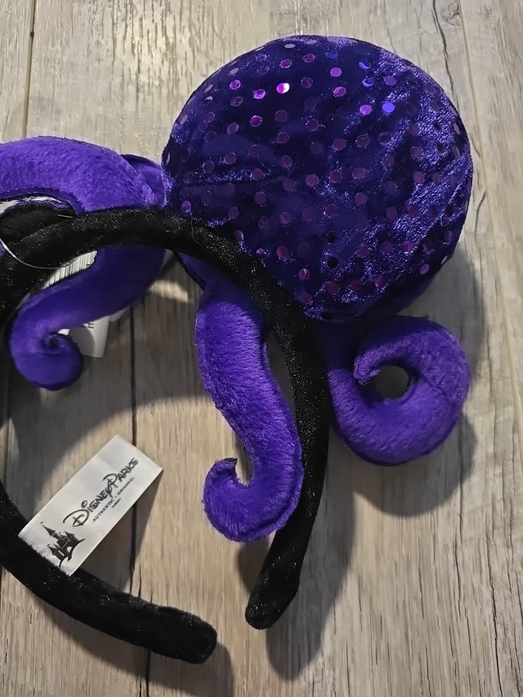 1Dive into a world of undersea enchantment with the Disney Parks Little Mermaid Ursula Ears Headband. Fans of the timeless tale can revel in the detail and spirit of Disney's iconic character, Ursula, with this vibrantly purple, one-size headband that's sure to stand out in any Disneyana collection. Crafted with care and adorned with the whimsy of The Little Mermaid theme, this headband is a contemporary treasure made for both enthusiasts and collectors alike. Whether you're attending a convention or adding to your Disney memorabilia, this piece promises to be a delightful addition to your assortment.