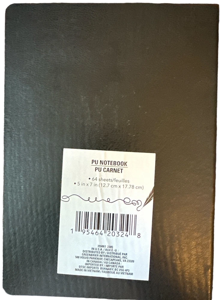 This is a soft PU, vegan, leather bound journal . It is in black with the word “ Stuff ” written on the front cover in gold cursive font . It has 64 unlined cream colored sheets . It has front and back craft paper cover sheets . Perfect for journaling, sketching, notes, list and more. Compact note pad in a perfect size for travel, fits easily in your bag or backpack . In new with tags condition . ————— NEW CONDITION: May have shelf wear to the packaging and/or tags of new items, including new old stock items. This may include bends, dents, markings that do not affect the item’s intended use. The exception is a listed as new with defects or open box item in which any defect will be described within the description. PRE-OWNED CONDITION: May have some expected minor imperfections, from age and/or use. I make every effort to describe any significant differences than normal expected wear. SIZE, MEASUREMENTS & OTHER INFORMATION: Size, measurements, weight and more should be found in either the item description, title or specifics. If you cannot find the necessary information you need then please contact seller to ask. PHOTOS: By examining all photos closely, an item will provide a tale of its history and condition much louder than any written description a seller could provide. If in doubt, then please contact seller to ask. CARE INSTRUCTIONS: I recommend that all items, new and old, to be cleaned prior to use. Some items, especially textiles, may hold residual odors from environmental conditions prior to being sourced. Most, items are sold as found and photo’d. Buyer accepts responsibility for all further care. SHIPPING: Browse my store! eBay will automatically combine shipping, if you pay for your purchases together from your cart and save you on shipping charges. If there is a significant difference of calculation overage paid, then rest assured, I will refund you the difference by sending you a partial combined shipping discount refund. I ship every 1-3 business days from date of purchase. RETURNS: I have a no return policy. I welcome all questions. If a potential buyer reads the condition, description, item specifics, examines all photos and ask any questions to clarify any concerns prior to purchase; then I am confident that the buyer will be satisfied with their purchase.