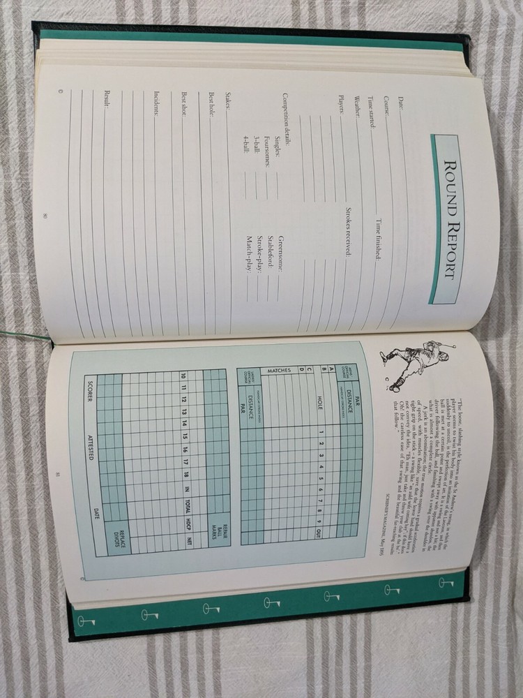 "My Golfing Record" Golfing Journal. Journal is Deluxe Bonded Leather with Gilded Edge. Condition is "Very Good". Shipped with USPS Media Mail. Great addition to any "Man Cave"....