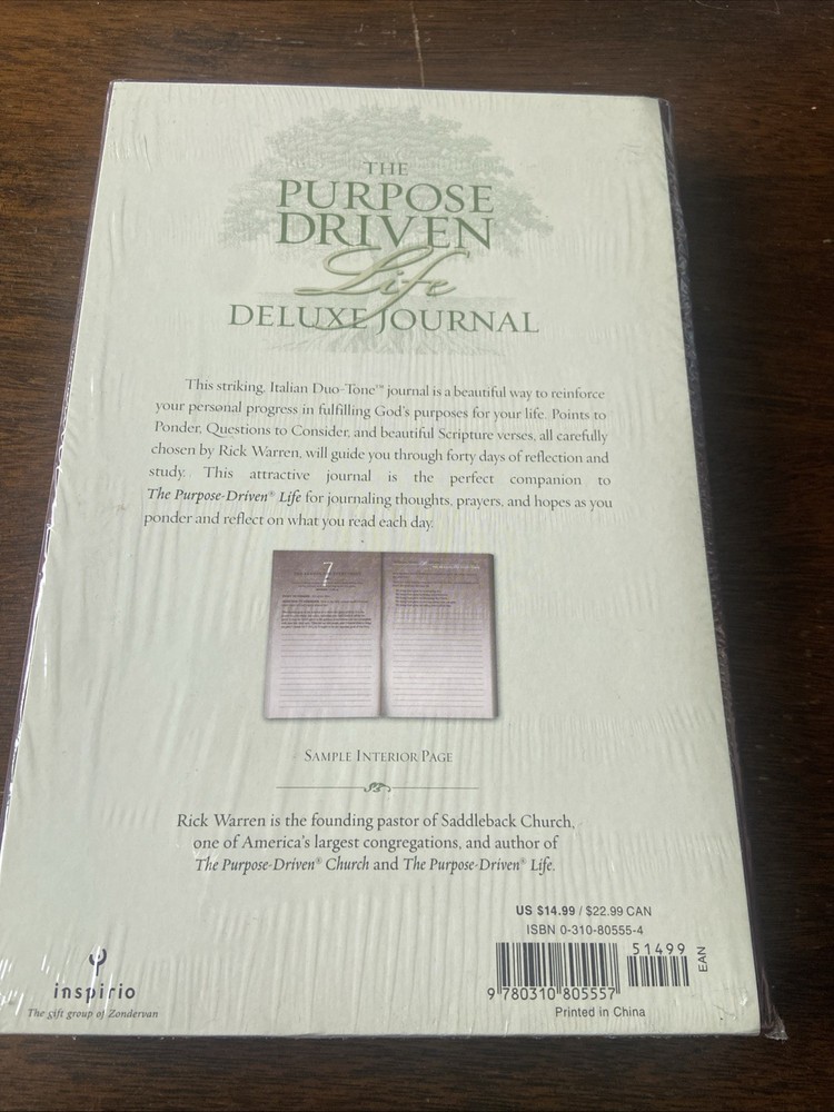 The New The Purpose-Driven Life Deluxe Journal by Rick Warren is a leather-bound edition that provides reflections on the author's quest for purpose in life. Published by Zondervan in 2003, this journal is a companion to the bestselling book "The Purpose-Driven Life." With 160 pages, this English-language journal offers a thoughtful exploration of Christian life and spiritual growth, making it a valuable resource for readers seeking guidance on their own spiritual journey. The deluxe leather-bound edition adds a touch of sophistication to this inspirational and insightful book.