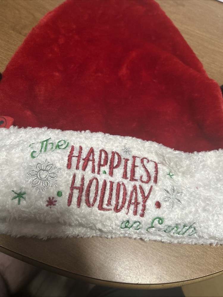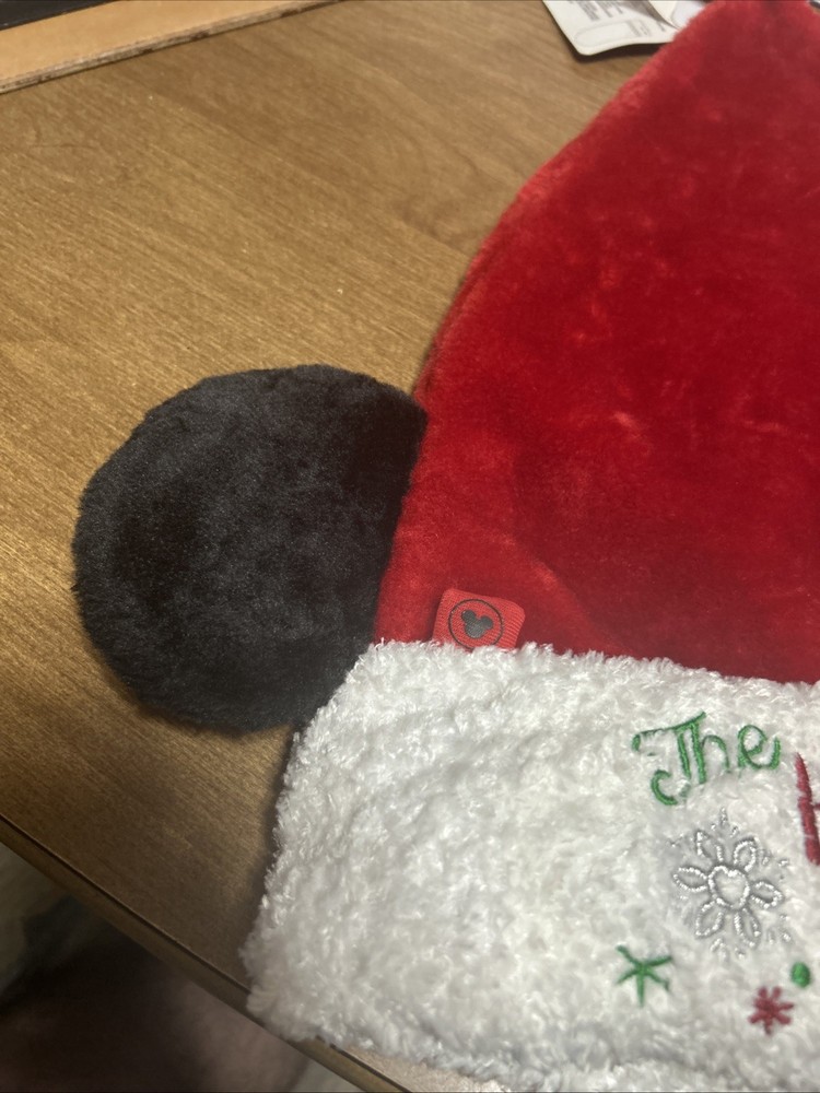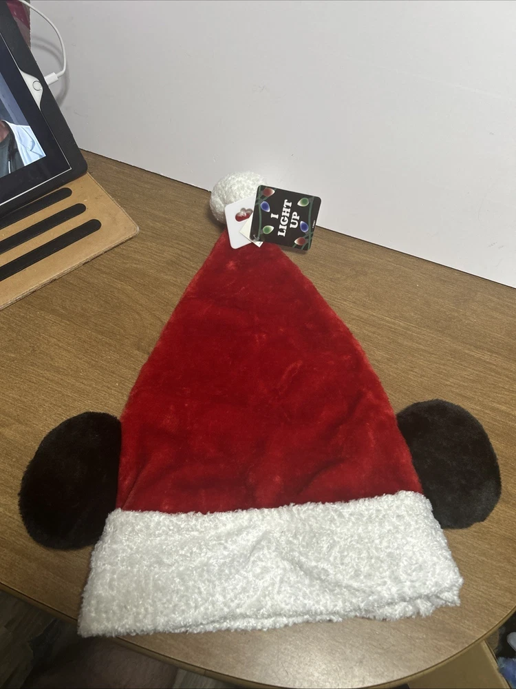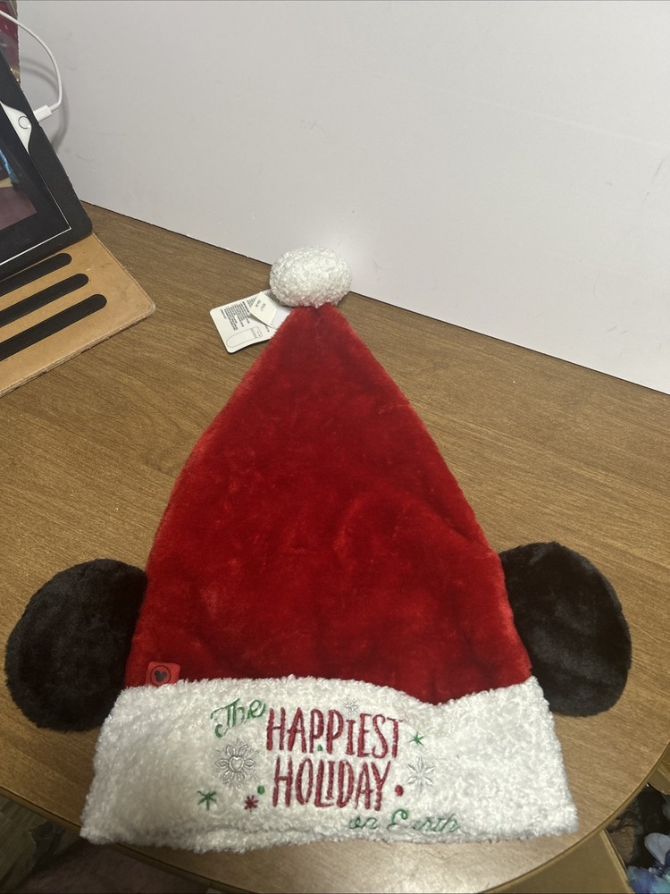 Celebrate the season with a cheerful touch of Disney magic. This Mickey Mouse Santa hat is a festive find for any Disney enthusiast. Emblazoned with the delightful message, "THE HAPPIEST HOLIDAY ON EARTH," it's sure to spread joy wherever you go. Crafted in vibrant red, the hat features the iconic Mickey Mouse, adding a playful twist to your holiday attire. Perfect for Disney Parks adventures or as a part of your Disney collection, this hat is designed for adult sizing and is unisex, making it a versatile addition to any fan's wardrobe. Whether you're looking to keep the Disney spirit alive during the holidays or simply want to wear your love for the franchise proudly, this hat is a must-have Disney collectible. The plug is still in the switch so the lights have never been used. Amazing hat sold as is. Final sale. Thanks
