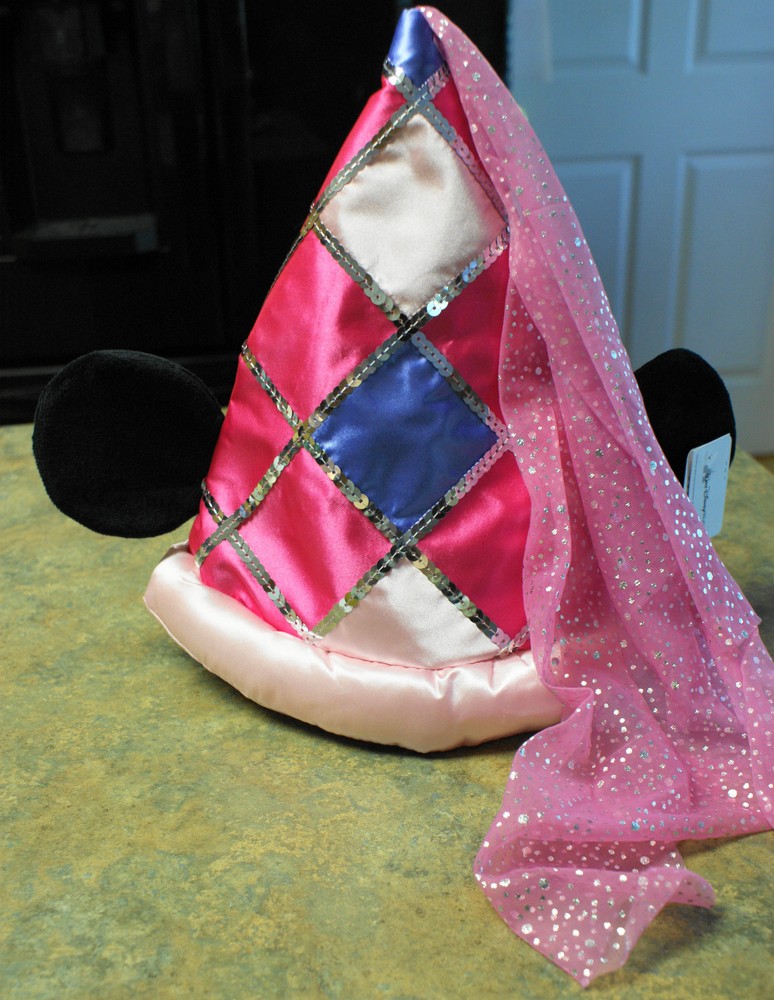 New Disney Parks Authentic PRINCESS MINNIE MOUSE Hat with Ears & Veil Kids Size Created especially for Walt Disney World ® Resort and Disneyland ® Resort When in Fantasyland, dress as the fairytale folk do; in this Princess Minnie Mouse Hat, direct from the Disney Parks. This classic conical hat with veiled train and mouse ears will leave your friends and family laughing happily ever after! Minnie style medieval hat Furry plush mouse ears Satin covering and lining Sequin trim Sheer print train Chin strap Polyester / PU Foam / EVA foam Hat 13'' H x 8 1/2'' Diameter (14'' W at ears) Train 22'' L Imported Please email with any questions prior to bidding. All sales are final. Please check out my store and other listings. I do combine shipping on multiple purchases. Please email for quote. International buyers are responsible for all import taxes or fees. Smoke free home. Thanks for looking.