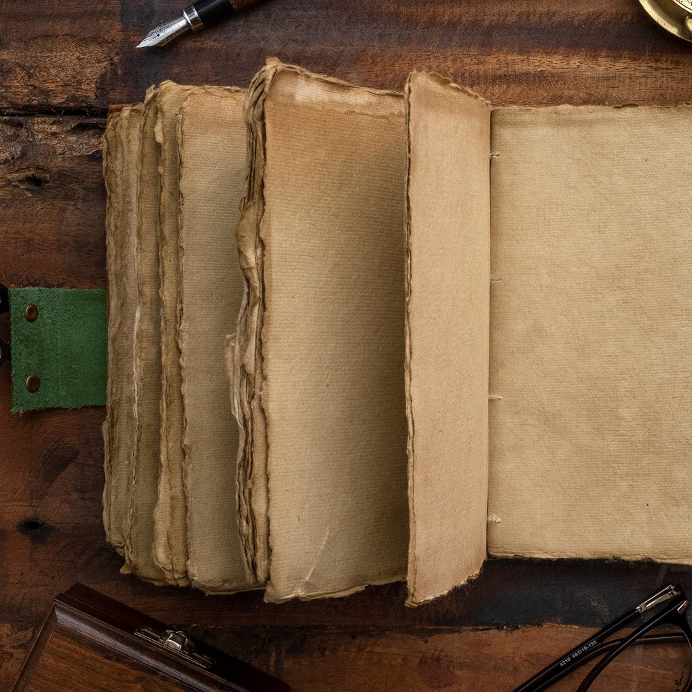Bring out your inner creativity with the NomadCraftsCo. Antique Leather Bound Writing Journal for Women and Men! The deckle edged vintage paper looks and feels like a thousand years old is treat to write on. The paper is made from environmentally friendly cotton and jute canvas. The paper is acid-free and pH nuetral therefore is a timeless piece of art. No more worries about ink messing up the pages either. The thick pages are ideal for pen, pencil, crayons and even charcoal! We can guarantee no bleed through! The vintage leather journal is a perfect sketchbook , book of shadows,grimoire, wicca, calligraphy journal, scrapbook, art journal, leather sketchbook and manymore. The leather bound journal made from antique paper is a treasure that you can pass down the generations. The leather is soft and supple to the touch and smells amazing. The leather will age over time and will get better and better. Its the perfect travel companion to cherish memories or even to jot down precious ideas and there is not better way preserve your memories for your future generations. Get Yourself The Most Valuable Travel Companion Today – Never Have To Travel Alone Again . Handcrafted by skilled artisans with a lot of love and care. Here’s Why This Vintage Leather Bound Writing Journal Is What You Are Looking For: 1. Soft Luxurious Durable and Supple Rustic Leather Bound Cover which ages with time. 2. 240 Pages of Thick Antique Vintage Cotton Paper which looks like thousand years old. 3. Sturdy Leather Binding Technique will make sure that the pages never fall off. 4. Large size 11.5 by 8.25 inches rustic scrapbook/organizer easily portable. 5. Being hand-made, no two journals are quite the same.