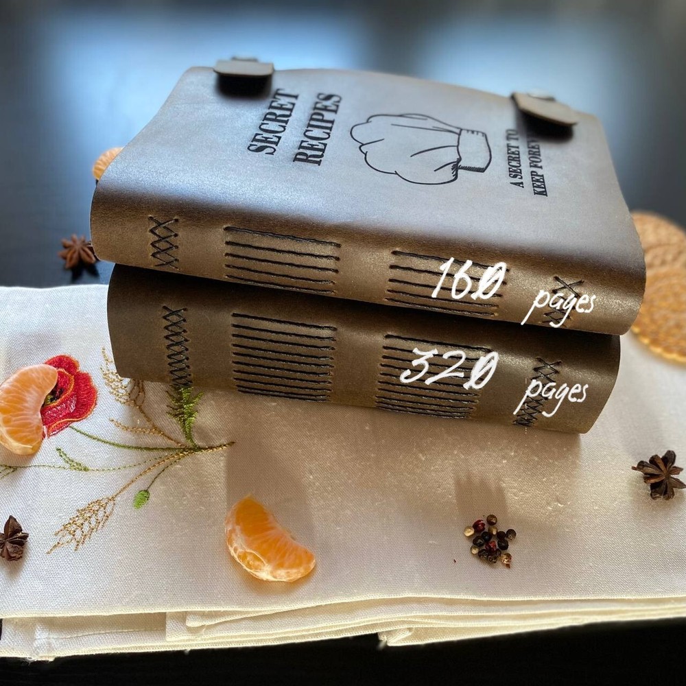 Book for recording Family recipes, Blank notepad Genuine leather cover handmade binding A5 format 320pages The best gift for mom...
