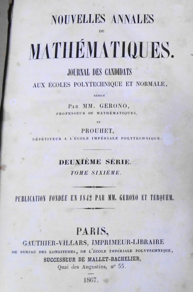 Nouvelles Annales De Mathematiques. 1867. Second Series, Tome 6.