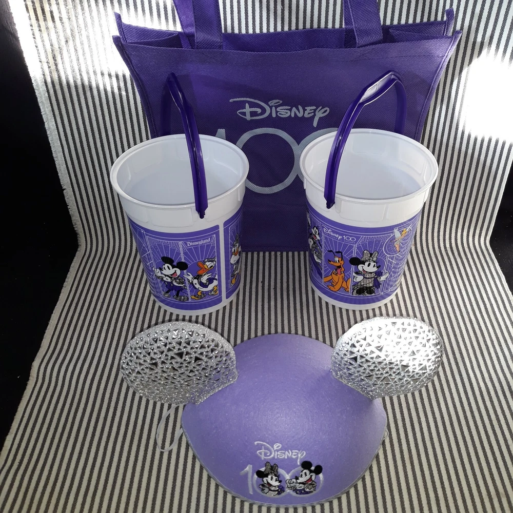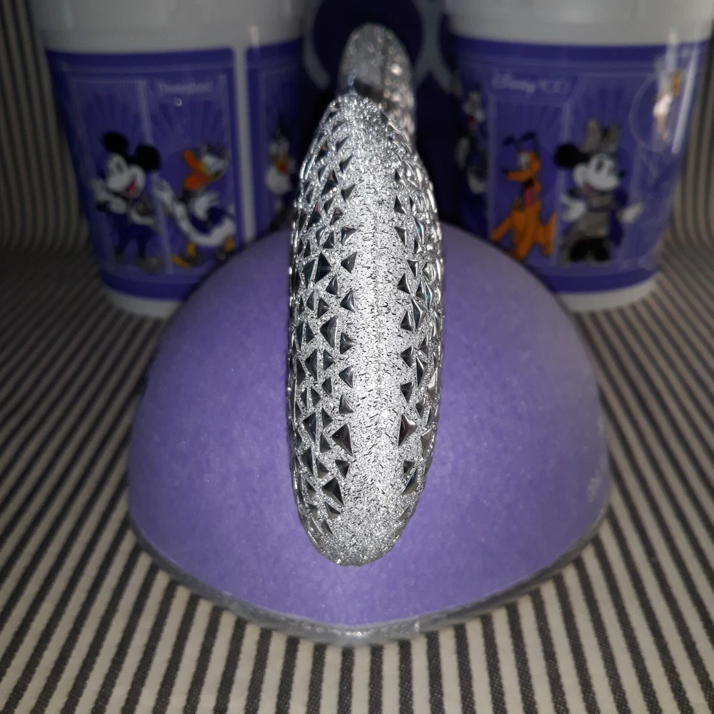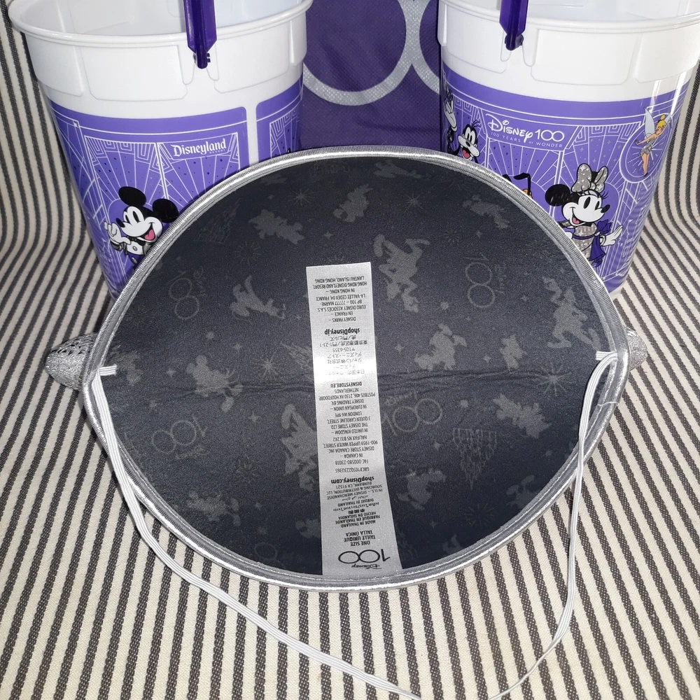 THIS AUCTION IS FOR THE RARE HARD TO FIND NEW WITHOUT TAG NwoT DISNEY PARKS CAST MEMBER MICKEY & MINNIE MOUSE ADULT SIZE EAR HAT SILVER & LAVENDER PURPLE FOR THE YEARS OF WONDER. ON THE FRONT ARE MICKEY AND MINNIE MOUSE INSIDE THE 100 LOGO OF THIS LAVENDER HAT HAS A CHIN ELASTIC WITH SILVER PATTERNED EARS AND TRIM WHILE THE BACK HAS BEEN ENSCRIBED WITH " CAST MEMBER ... 100 YEARS OF WONDER"!! THIS ONE SIZE EAR HAT MEASURES APPROXIMATELY 11"w w/EARS x 6-1/2"d x 8"w AT CAP. THIS CAST MEMBER EAR HAT WAS ONLY BRIEFLY WORN ONCE FOR PHOTO OP SO IS IN NEW CONDITION WITH VERY MINIMAL TO NO SIGNS OF USE OR WEAR ... NO RIPS, TEARS, DINGS, DENTS, FADING, STAINS, DISCOLORATIONS, OR REPAIRS ... NICE :) GREAT FOR EVERYDAY WEAR :) BUT WOULD BE FABU FOR NEW YEAR'S!!!
