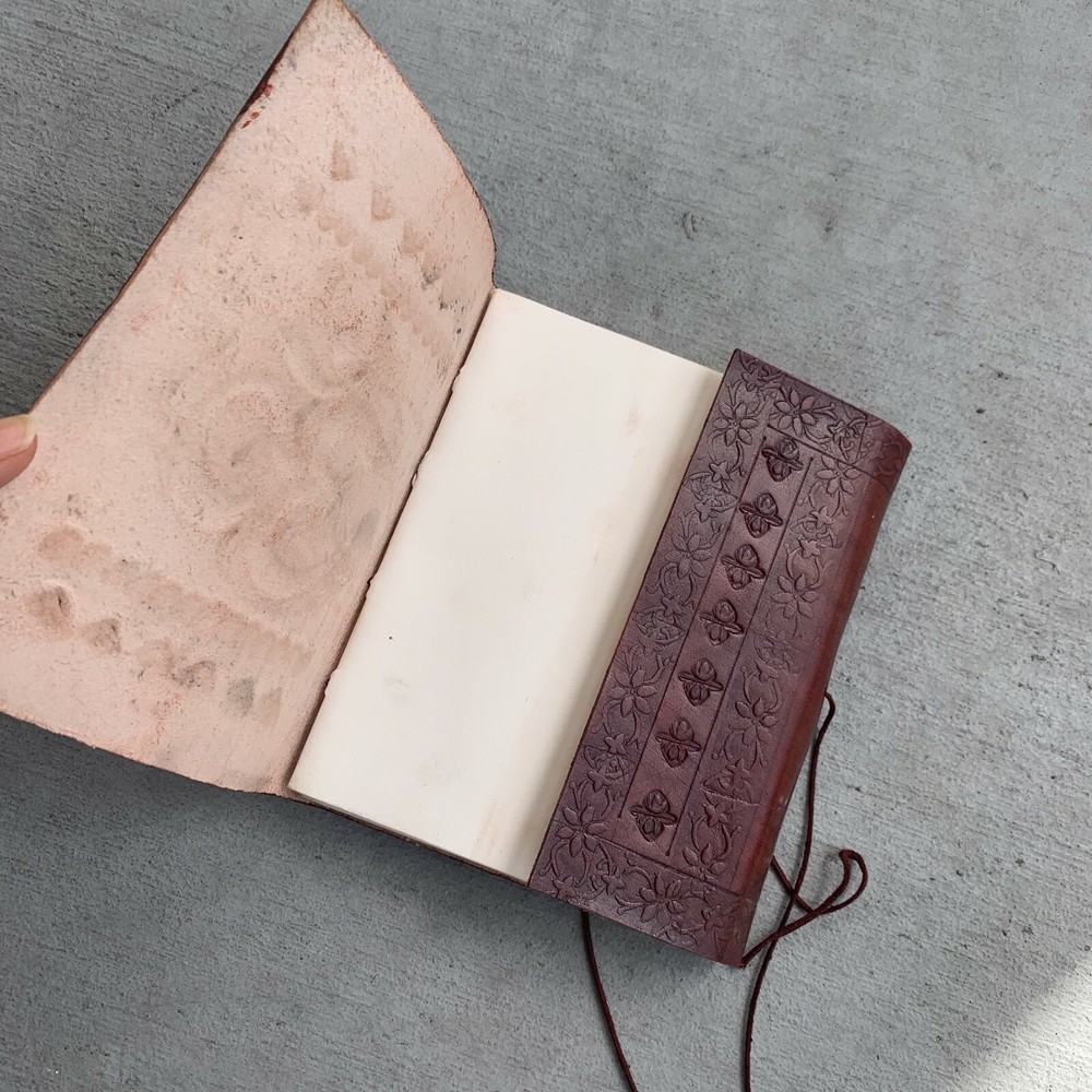 They contain hand made paper which is woven into a book. The Leather cover contains embossed OM, AUM, OHM design. The paper is naturally treated cotton paper which are best suited for writing, noting, jotting, sketching, doodling etc. Product Dimensions: Length - 8 in * Width - 6 in these are ready to ship items and will ship within 1-2 business days. If you are an international customer, then I suggest to upgrade to Priority mail so that you can get the tracking number to track the shipment. PLEASE NOTE: If you wish to purchase more than one item at the same time, please send me a message to request if I could do a combined shipping cost.