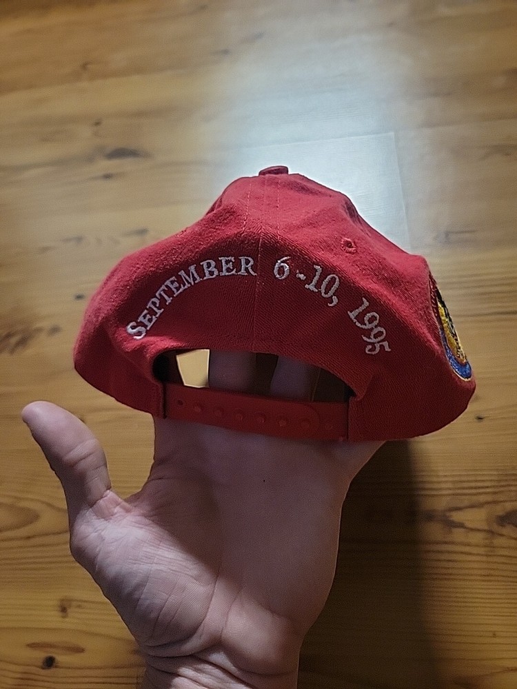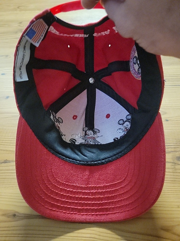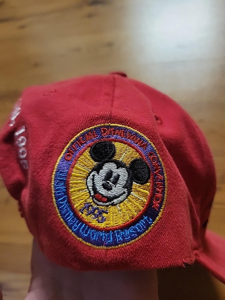 This official Disneyana hat is a must-have for any Disney fan. Featuring a classic red color and the iconic Mickey Mouse character, this hat is a perfect addition to any collection. Made in the United States in 1995, this hat is suitable for adults and is perfect for both men and women. Represent the Disney franchise with this unisex snapback hat, perfect for any occasion. This hat is a great addition to any Disneyana collection and is sure to turn heads. Don't miss out on the opportunity to own this piece of Disney history.