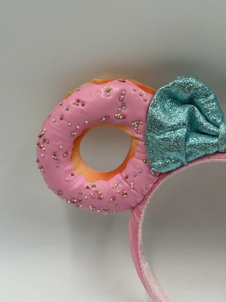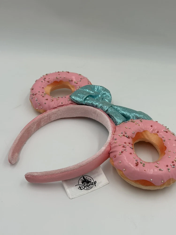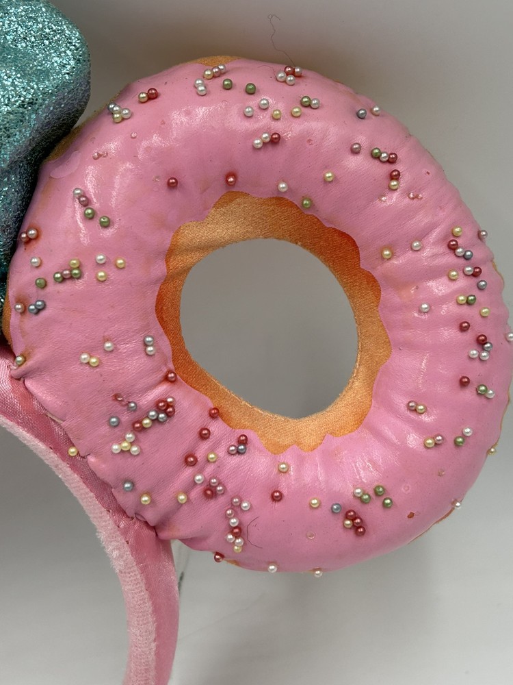 Official Minnie Mouse Donut Ears Headband Walt Disney Parks Pink Sprinkles Food Looks like some of the sprinkles have fallen off the donut ears