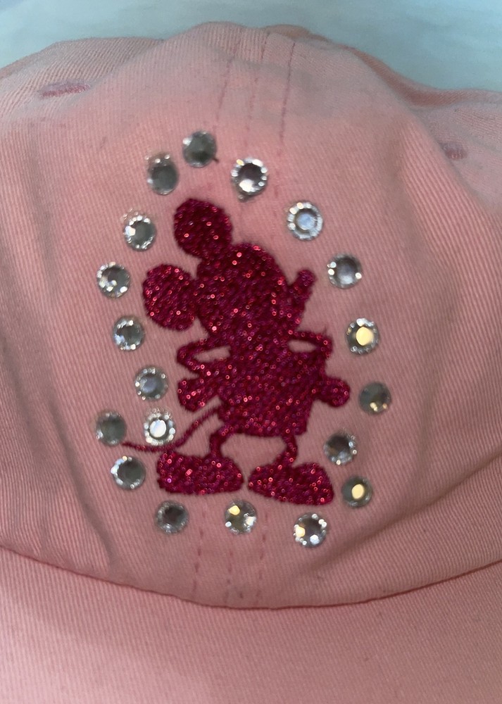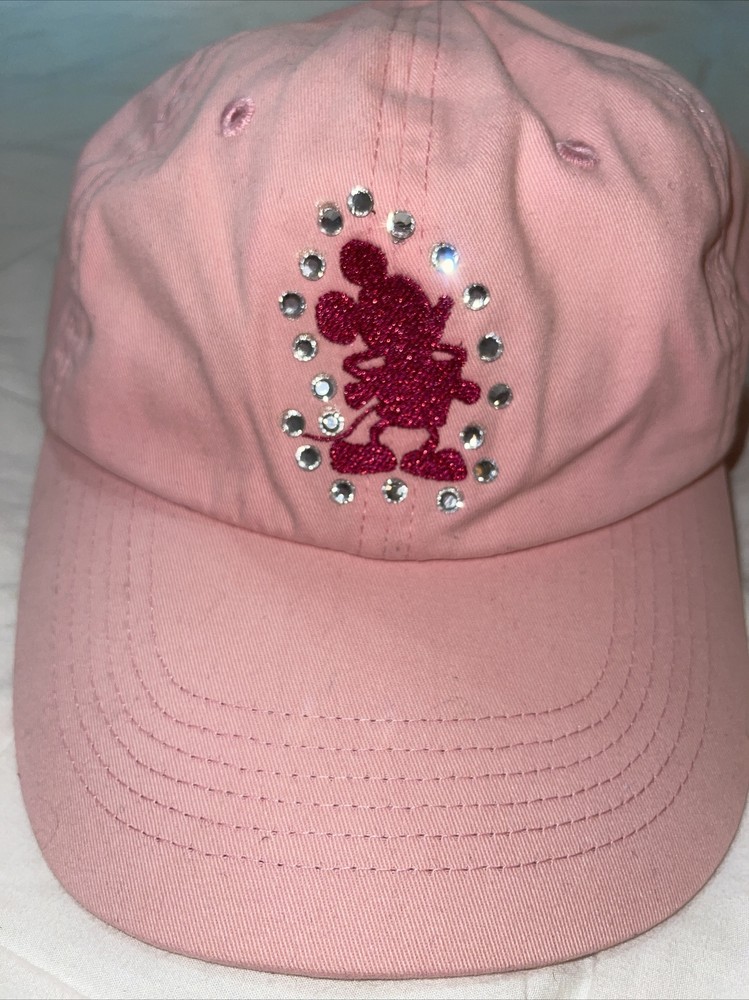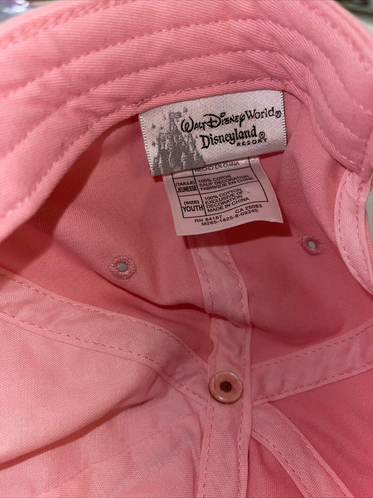 Walt Disney World Mickey Mouse Baseball Cap Hat Pink, Youth - but can fit smaller woman’s head Adjustable with Velcro. The measurement around inside of hat is 20”