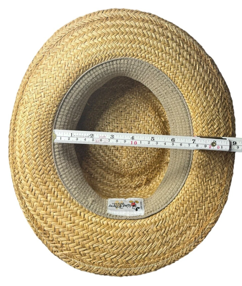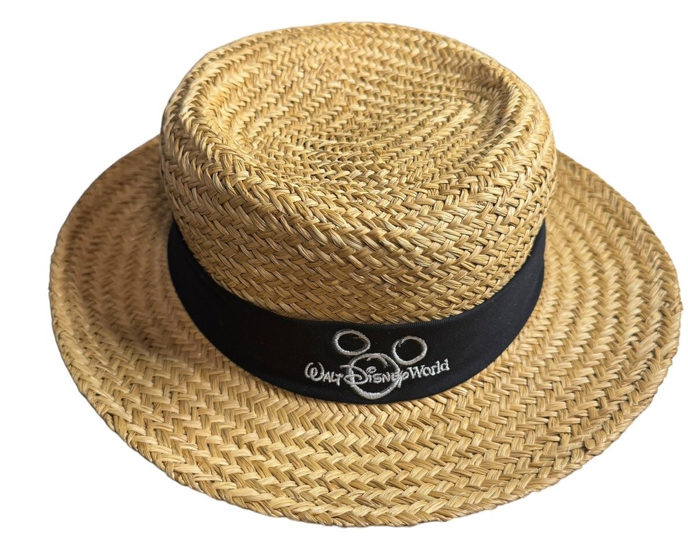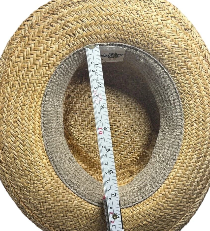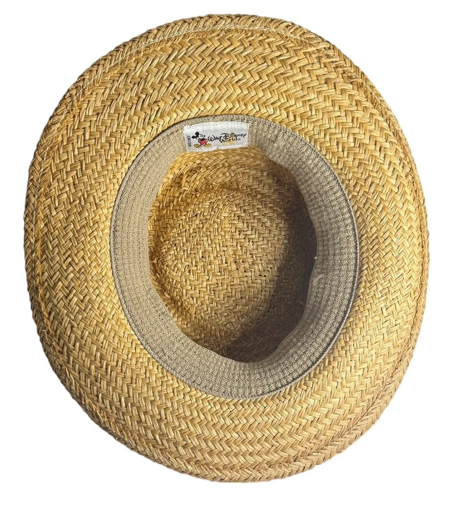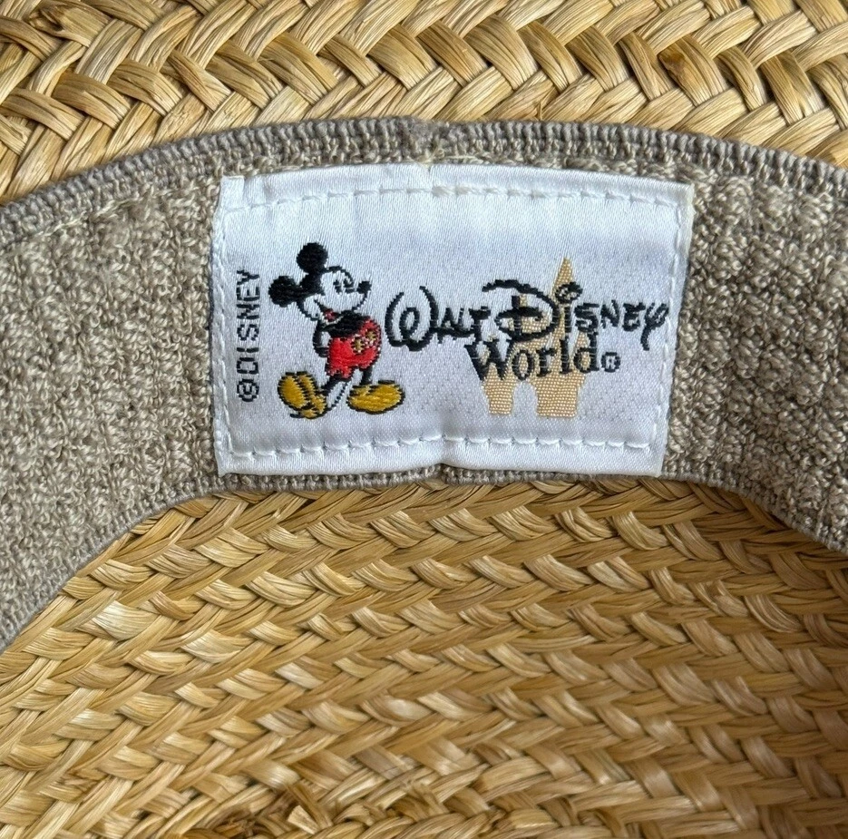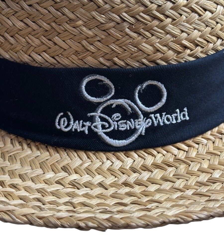 This official Walt Disney World wide rim straw sunhat is a must-have for any Disney fan. With its unisex design, it's suitable for both children and small adults. The hat features a classic straw color and the iconic Mickey Mouse silhouette on the front, making it a perfect addition to any Disneyana collection. The hat is branded with the Disney franchise and is perfect for wearing on your next trip to the amusement park or on a sunny day out. It's one size fits all, so you can wear it comfortably no matter how old you are. Add this Disney sunhat to your collection today and show off your love for Mickey Mouse and all things Disney.