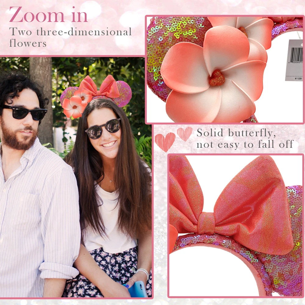 Exclusive Aulani Hawaii Disney Orange Plumeria Minnie Ears Bow Headband
