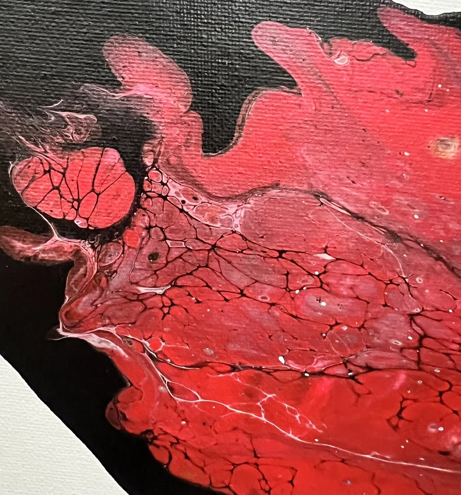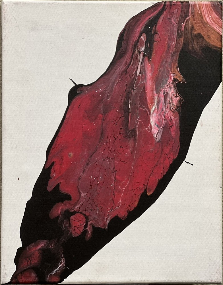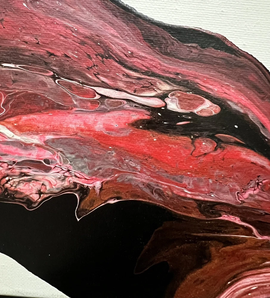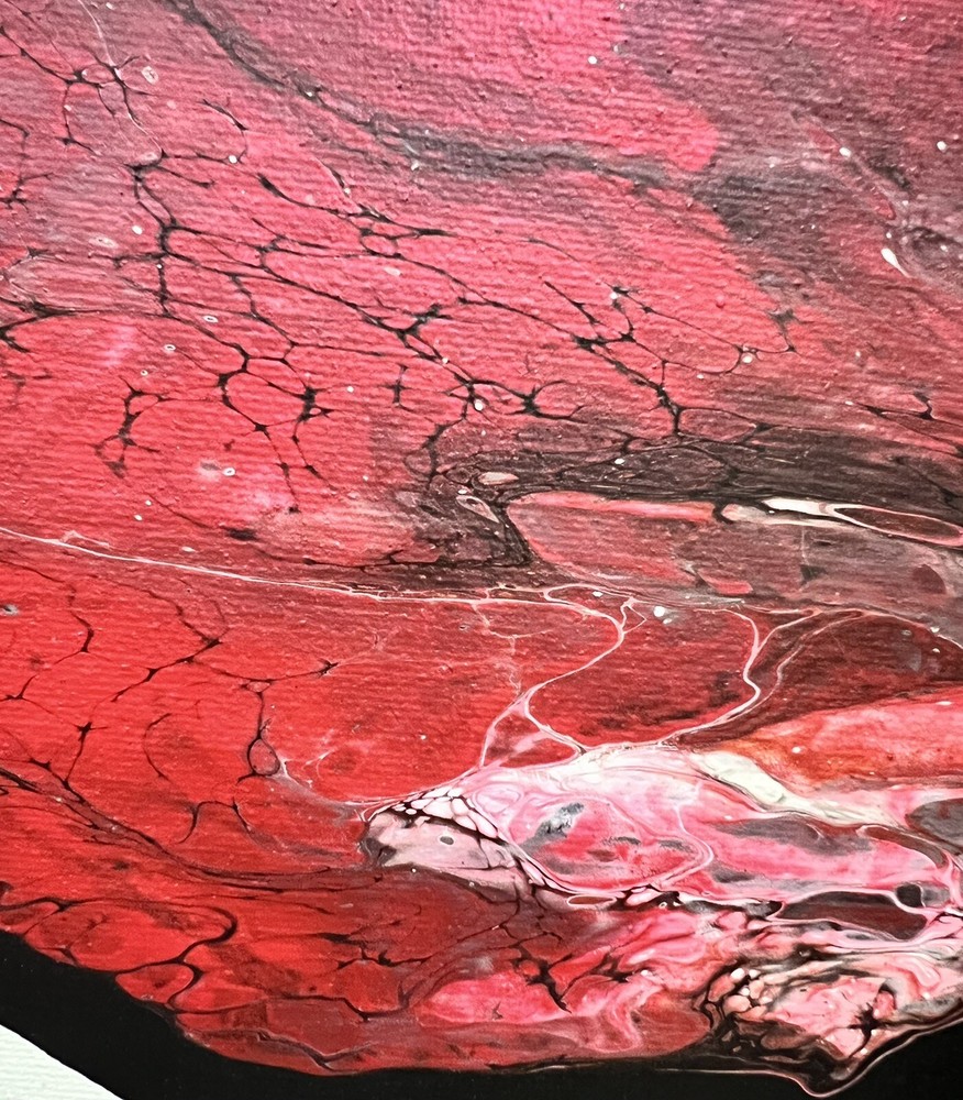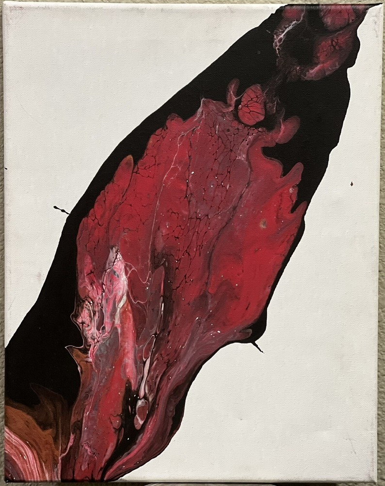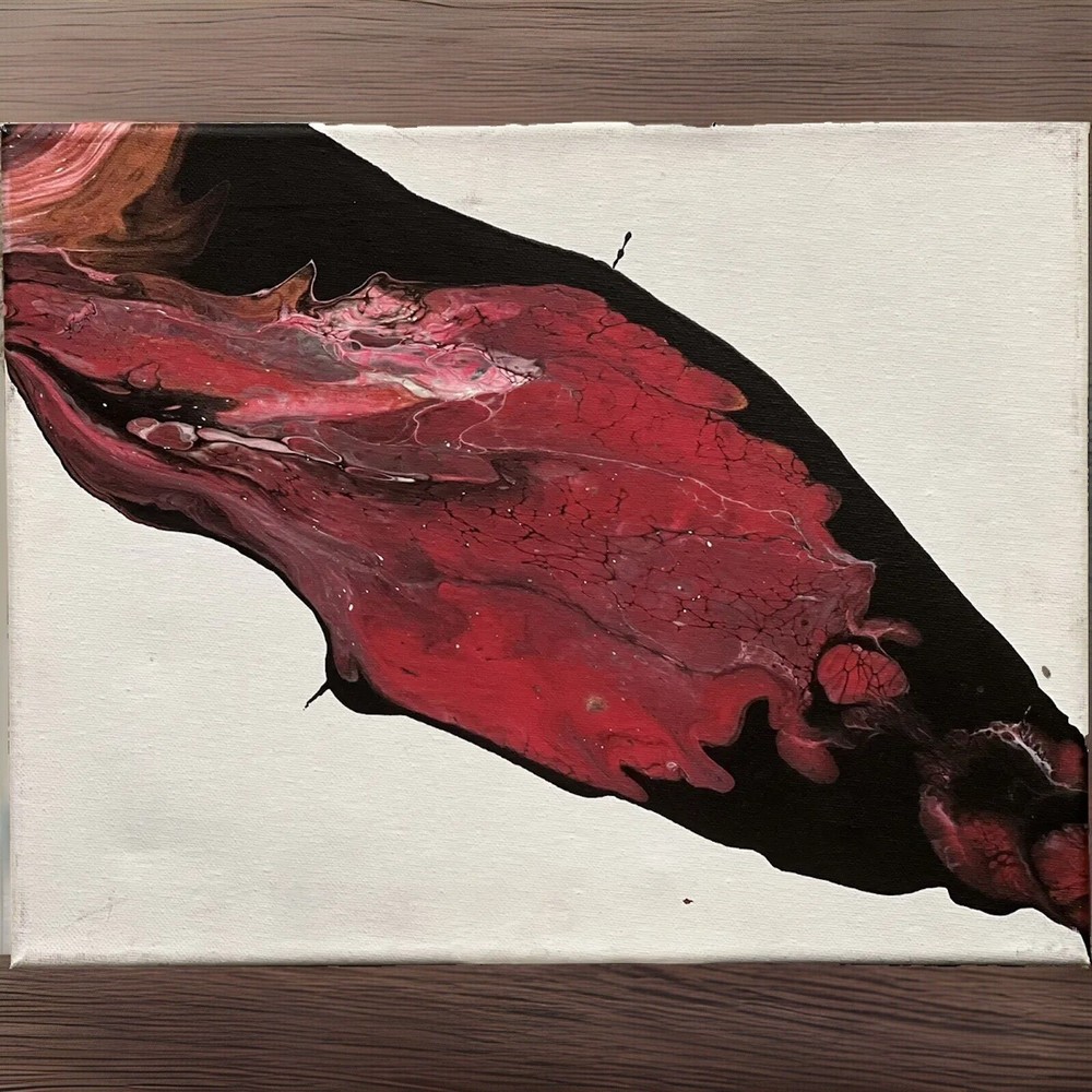 This unique painting showcases the fascinating properties of colored acrylic polymer emulsions and their flow behavior, inspired by rheology. The one-of-a-kind piece is 11x14 inches and is on a stretched canvas, produced using unique techniques. This original painting is perfect for art enthusiasts or collectors. It is an authentic piece, not a licensed reproduction, and was created using acrylic polymer emulsion. The painting's subject matter and style make it a rare find, and its dimensions of 11x14 inches make it a perfect size to display in any room. P(2)