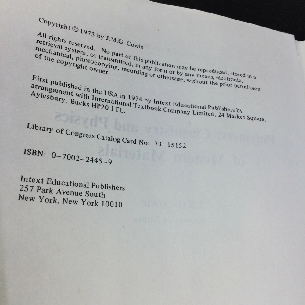 POLYMERS: CHEMISTRY & PHYSICS OF MODERN MATERIALS J.M.G. COWIE 1974 US HARDCOVER 1ST ED