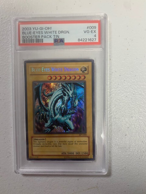 This rare and highly sought-after Blue-Eyes White Dragon card is a must-have for any serious Yu-Gi-Oh! TCG collector. Featuring Yami Yugi, Seto Kaiba, Blue-Eyes White Dragon, and Yugi Muto, this limited edition 2003 Collector's Tin promo card is in excellent shape and has a beautiful foil finish. The card is perfect for players and collectors alike and is sure to impress any fan of the popular anime series. With its stunning design and secret rare rarity, this card is a true gem and a valuable addition to any collection.