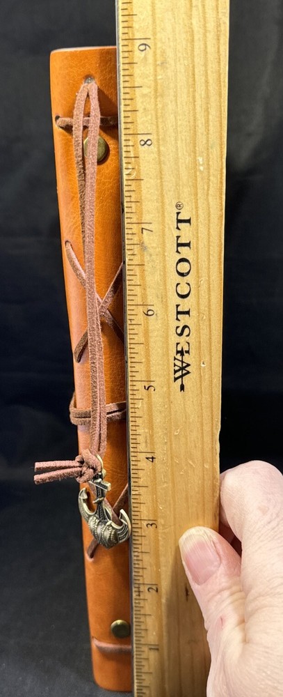 This leather writing journal notebook is the perfect addition to your office supplies. With its classic spiral bound design and nautical theme, it's sure to impress. Measuring 9 inches by 6 inches, it's the perfect size for jotting down notes or sketching out ideas. The notebook is refillable, allowing you to use it again and again. The cover material is made of high-quality leather, ensuring durability and longevity. The color is a beautiful tan that will complement any style. This blank book is perfect for anyone who wants to add a touch of elegance to their note-taking routine.
