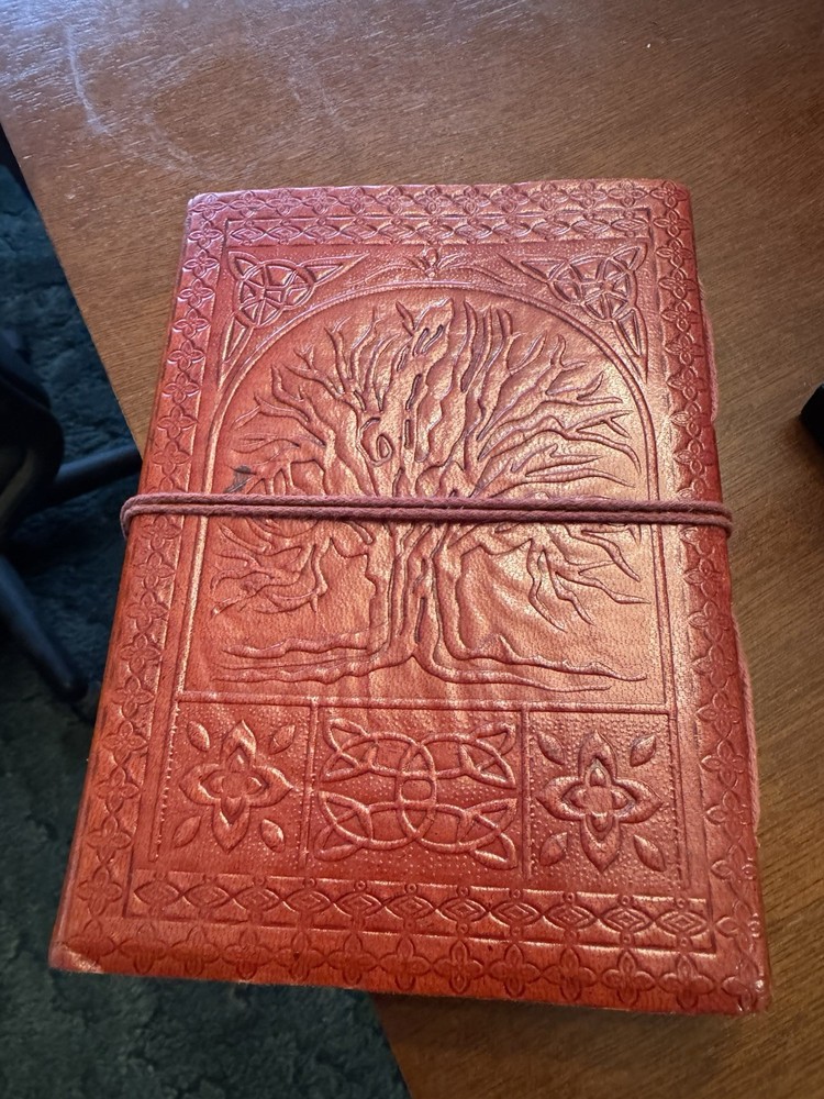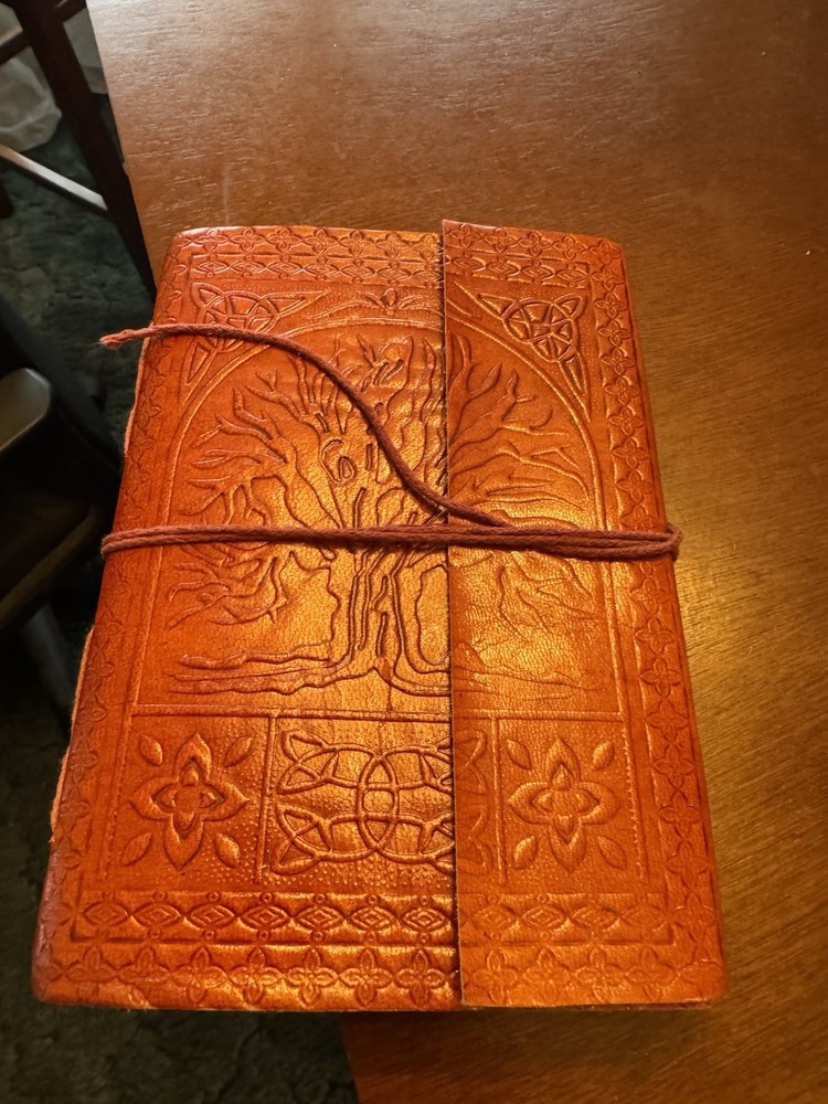 The Pagan brown leather covered notebook is a beautifully crafted journal designed for those interested in spirituality and pagan beliefs. The notebook features a durable leather cover, making it a sturdy and stylish option for recording spiritual insights, reflections, or rituals.