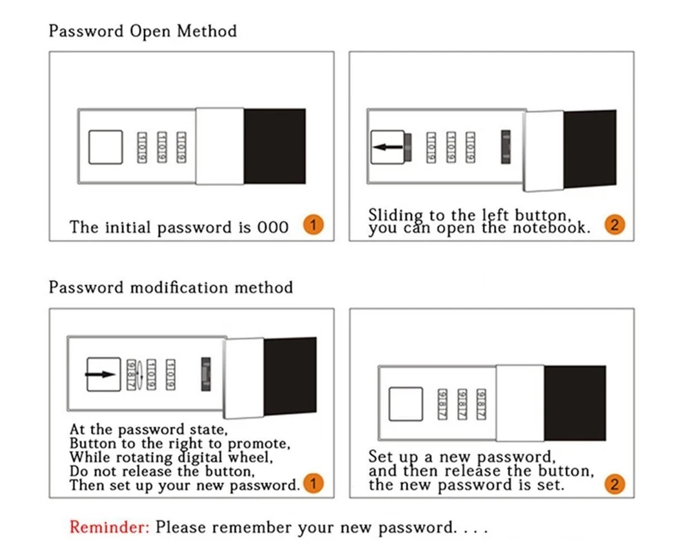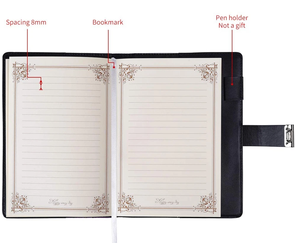 Material:High-quality waterproof PU leather. Cover size: 21.5cm×15cm / (8.47" x 5.9") Paper inside size: 20.5cm×14cm / (8" x 5.5") The amount of paper:130 sheets/ 260 pages Password Open Method: ① The origin passcode of the notebook is 000 ② Sliding to the left button, you can open the notebook. Password Modification Method: ③ Please push the button to the right when the passcode was right, then you can change the passcode, please do not releases the button until you set the new passcode. ④ Set up a new password, and then release the button, the new password is set. please remember your new password SERVICE : Your satisfaction is our goal of service. If there is any problem with the item after you get it, please free to , we will try our best to resolve all the problems for you. SIZE: Cover size 8.47×5.9 inches (21.5×15cm) ,Inner page size 8 x 5.5 inches(20.5×14 cm), The amount of paper: 110 sheets/ 220 pages , and the horizontal line pages perfectly combined to meet diverse writing needs. PROTECT YOUR PRIVACY: 0-9 Three-digit combination, hundreds of password combination, a good degree of confidentiality. Remember not to forget your password, and do not tell others to protect your secret. REFILLABLE PAPER: Horizontal line arrangement, Line spacing:0.9 mm. (Write smoothly, not easy to infiltrate, do not hurt the eyes) inner paper can be easily refilled, leather cover can be reused. PERFECT GIFT: Record your valuable thoughts, memories and experiences in this classic notebook. This leather journal is suitable for all adults, men, women, teen girls and boys. Perfect for Christmas gifts, New Year gifts, or Birthday presents. SINCERE SUPPORT: Please feel free to buy lock journal, if you have any questions, please in time, we will give you a satisfactory answer within 24 hours. Any messages from you is necessary for our growth.